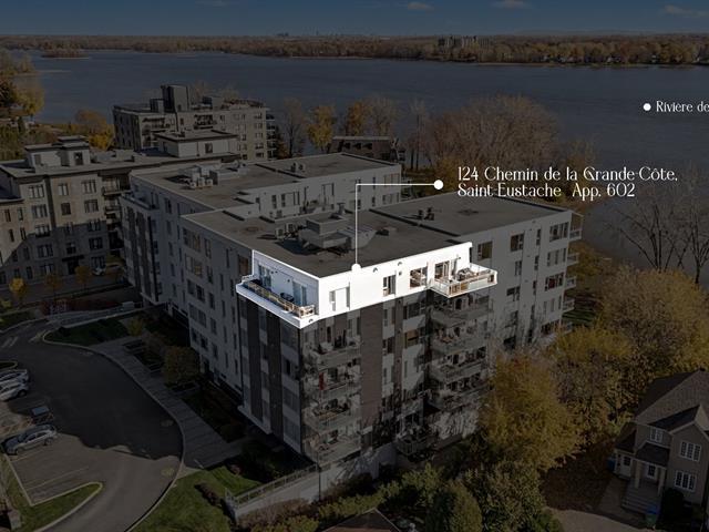 Vivez au sommet dans ce Penthouse de prestige vue spectaculaire sur la rivière des Mille-Îles. Ce penthouse est au 6e et dernier étage. Il vous offre 3 chambres à coucher, deux salles de bain,une cuisine haut de gamme avec comptoir de granite,électroménagers inclus.salle de lavage indépendante(inclus laveuse et sécheuse).Salon avec foyer au gaz et télévision incluse.2 grands balcons avec meubles de jardins inclus(voir inclusions).2 espaces de stationnements intérieurs,rangement intérieur privé,piscine extérieure chauffée au sel, salle de sport, gazebo, quai. Un coup de coeur assurée,une visite s'impose! (55270597)