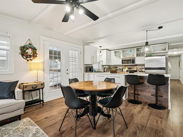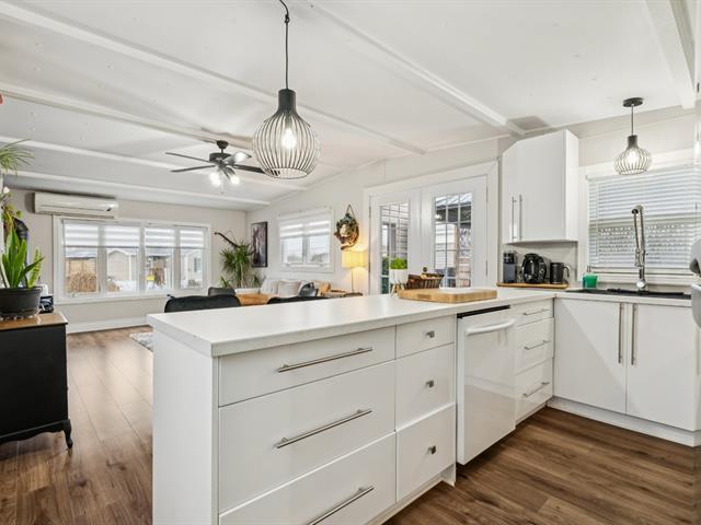 Charmante maison mobile de 2 chambres et 1 salle de bain sur terrain loué à Ste-Martine. Très bien entretenue et améliorée au fil des ans, elle offre une aire ouverte lumineuse réunissant cuisine et salon, agrémentée d'un poêle au gaz et d'une thermopompe murale pour un confort optimal. Cour aménagée sans voisin à l'arrière, gazebo, deux cabanons et stationnement pour 3 véhicules. À 2 minutes des parcs Paul-Léveillé et du Méandre, du bord de l'eau pour cayak et paddlebord et à moins de 20 minutes du lac Saint-Louis et du club de golf Belle-Vue. (49308924)
