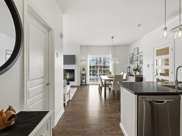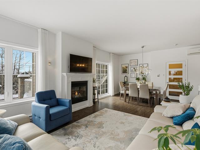 Joli condo de 1 122 pi² très lumineux situé à Prévost, offrant un espace de vie moderne et chaleureux. Hall d'entrée avec garde-robe double menant à une aire ouverte comprenant un salon baigné de lumière avec foyer au gaz naturel. Cuisine et salle à manger adjacentes avec comptoir-lunch, garde-manger et cuisinière au gaz. Grande porte-patio donnant accès à une terrasse privée avec rangement. Deux chambres, une salle de bains et une salle d'eau, espace laveuse-sécheuse, climatisation murale et échangeur d'air. Garage et deux stationnements extérieurs. Espaces communs avec piscine extérieure et pavillon. (48259242)