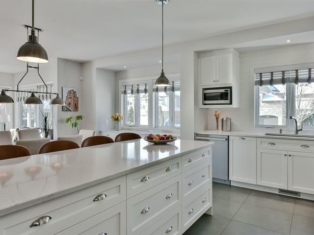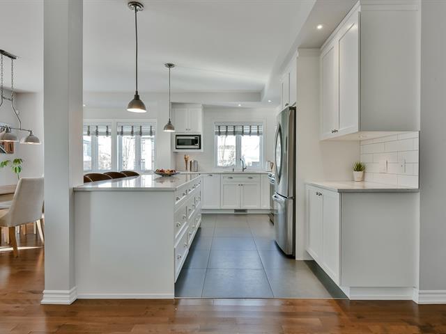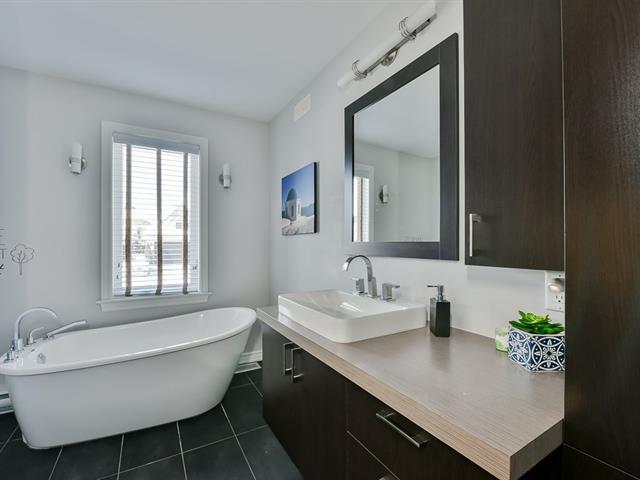 Situé au prestigieux Parcours du Cerf, ce magnifique condo de 1 550 pi² offre une aire de vie ouverte lumineuse grâce à sa verrière et à ses grandes fenêtres. Le salon avec foyer au gaz naturel est au coeur de l'espace. La cuisine propose un grand îlot avec comptoirs en quartz et beaucoup de rangement. L'unité comprend deux chambres, dont une chambre principale avec walk-in et salle de bain attenante avec douche vitrée. Le niveau inférieur polyvalent offre un accès direct au garage double. Grande terrasse intime, sans voisin à l'arrière. Emplacement stratégique près des autoroutes, ponts vers Montréal, transport en commun, parcs et services. (44920947)