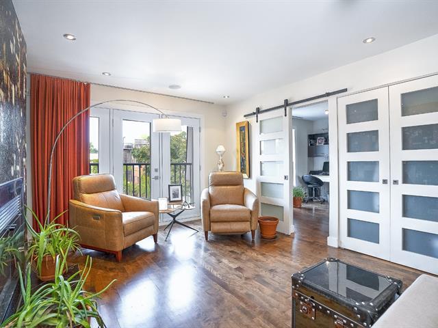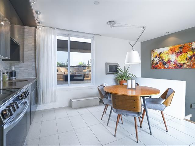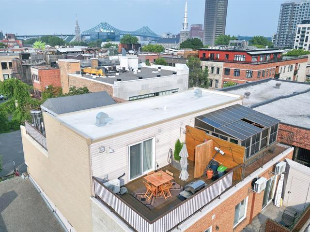 Magnifique condo rénové au complet sur 2 niveaux de 1000 pieds carrés au dernier étage avec 2 grandes chambres, un grand salon et un espace boudoir. Cuisine et salle à manger au dernier niveau avec l'accès à 2 grandes terrasses aménagées. Condo lumineux, beaucoup d'inclusions. Un espace de stationnement extérieur inclus. Clef en main. (46671961)