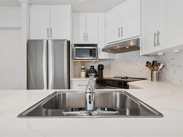 SUPERBE UNITÉ REZ-DE-JARDIN *SECTEUR RECHERCHÉ* Cette propriété se distingue par sa vaste aire de vie, baignée de lumière naturelle. Salle à manger ouverte sur la cuisine, porte patio vers la terrasse. Cuisine rénovée en 2022 qui vous offre un design actuel et fonctionnel. L'unité comprend 2 chambres à coucher, dont une chambre principale avec accès direct à la salle de bain, douche indépendante. À l'extérieur, une terrasse arrière couverte assure intimité et tranquillité. Deux espaces de stationnement extérieurs ainsi qu'un rangement extérieur complètent l'ensemble Emplacement privilégié, à proximité des services.Une opportunité à découvrir! (47935059)