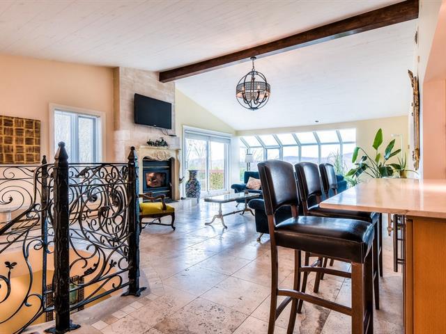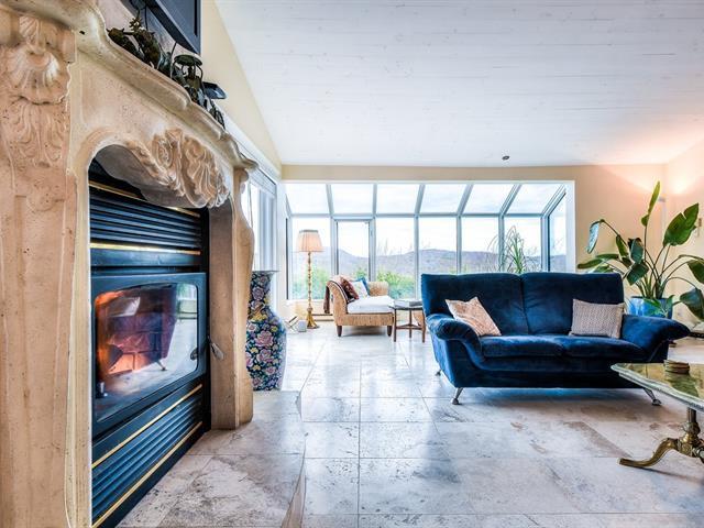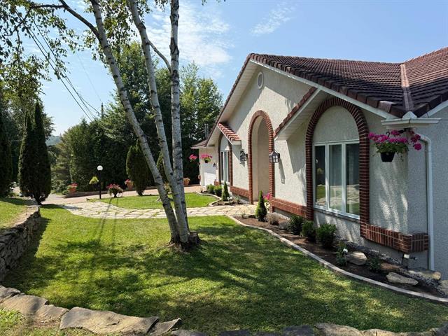 Vivre au sommet! Vue magnifique sur le Mont-Sauvage et les montagnes environnantes. Desservie par aqueduc et égoûts municipaux. Idéale pour la vie familiale avec plus de 3500 pi ca d'espace de vie. De la place pour tous et leurs hobbies. 5 c.a.c. de bonne grandeur, suite des maîtres avec walk-in/dressing, 3 sdb, grand salon-cuisine à aire ouverte (2 fours Bosh encastrés), salle à déjeuner, 3 séjours et garage double 1/2. Près de tous les services, sentiers de plein-air et pistes de ski. Qualité supérieure: planchers de pierre et de céramique inaltérables, rampe en fer forgé, 2 foyers au bois, thermopompe (2024). Très bien entretenue (48641705)