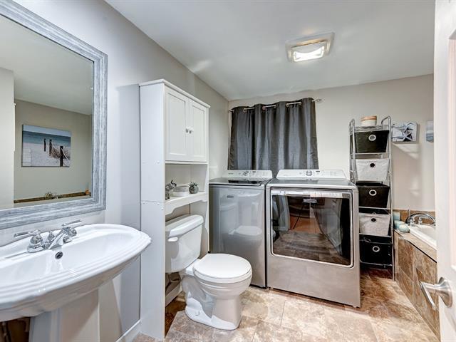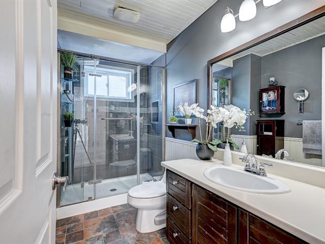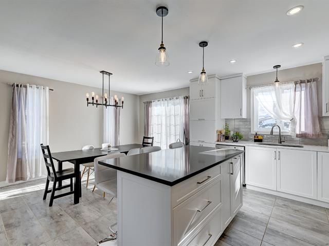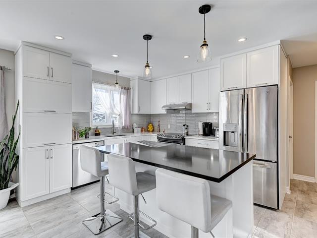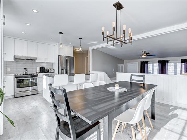 Superbe bungalow moderne à aire ouverte de 4 chambres à coucher et deux salles de bain situé près des services, à distance de marche de plusieurs commerces tels qu'épicerie, restaurants, nettoyeur, banque, etc. À quelques rues du train de banlieue direction centre-ville de Montréal. La propriété comprend une magnifique cuisine rénovée au plancher chauffant de céramique, beaucoup d'armoires et un îlot central. La cuisine est ouverte sur une spacieuse salle à manger et un grand salon. Le rez-de-chaussée comprend aussi 2 belles chambres à coucher et une salle de bain moderne avec douche de verre. Il y a une thermopompe murale au rez-de-chaussée (55953483)