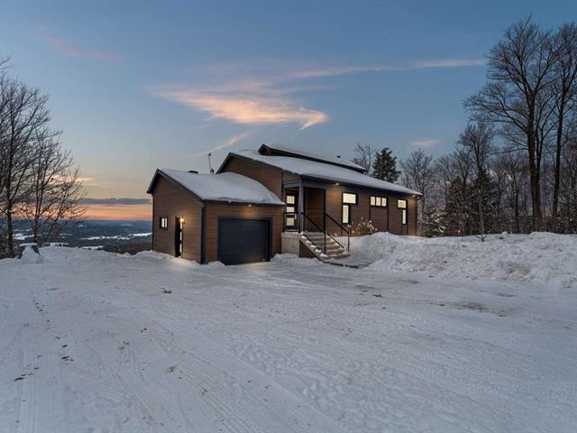 Perchée au sommet d'une montagne, cette propriété exceptionnelle vous offre intimité absolue, tranquillité et panoramas à couper le souffle sur près de 220 000 pi² de terrain boisé en cul-de-sac. Accès privilégié aux lacs Grenville et Keatley (moteur électrique permis), couchers de soleil spectaculaires en façade et arbres fruitiers matures. Plain-pied lumineux à grande fenestration avec vaste galerie pour profiter pleinement du paysage, 3 chambres, bureau, 2 salles de bains complètes, garage attaché, remise et grand hangar pour tracteur, bateau ou VTT. Un véritable havre de paix, parfait comme chalet haut de gamme ou résidence principale. (42959859)