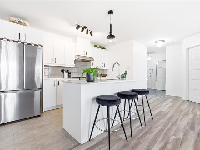 Élégant condo de 2 chambres, un véritable coup de coeur! Aires de vie à concept ouvert offrant une ambiance conviviale et lumineuse. Cuisine moderne et spacieuse avec grand îlot, comptoirs de quartz et rangement abondant, incluant une section d'armoires additionnelle et un espace laveuse-sécheuse discret. Électroménagers inclus : cuisinière, réfrigérateur, lave-vaisselle, laveuse et sécheuse, ainsi qu'aspirateur central et climatiseur mural. Grande salle de bains avec bain et douche séparés, rangement intérieur, grand balcon, stationnement et piscine creusée et chauffée. Un condo clé en main qui coche toutes les cases! *Voir addenda + d'infos (54302046)