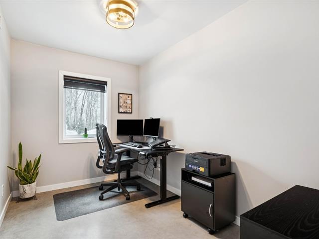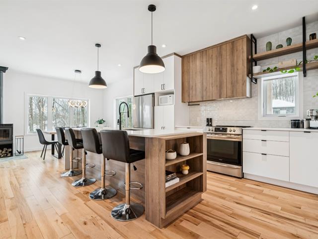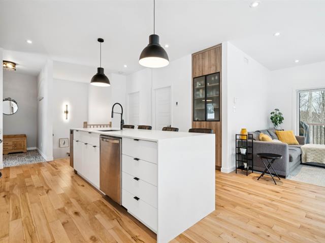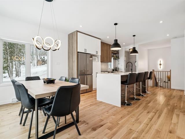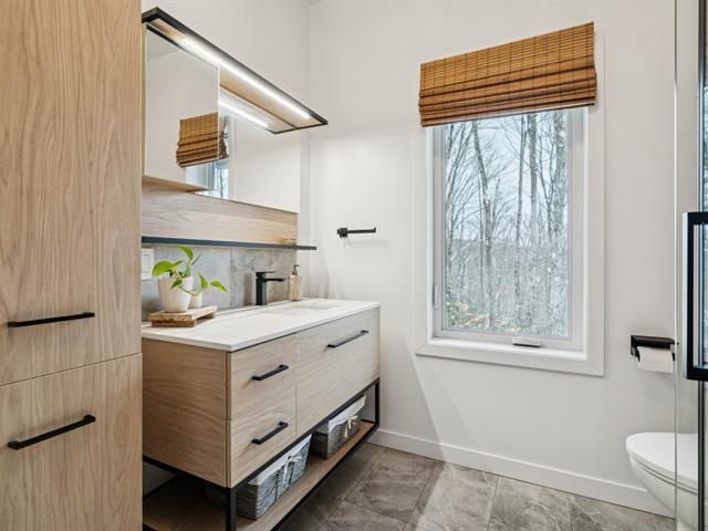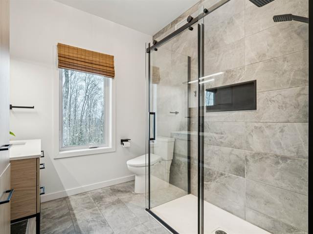 Propriété écologique certifiée Novoclimat, secteur du mont Catherine, grand terrain boisé d'érables sans voisin arrière. Quartier paisible et intime.Offrant 3 chambres (voir info pour la troisième), plafonds de 9 pieds au rez-de-chaussée, abondante fenestration, hall d'entrée avec plancher chauffant. Aire ouverte lumineuse avec cuisine moderne, comptoirs de quartz et finitions haut de gamme. Salle de bains attenante à la chambre principale avec plancher chauffant et douche vitrée.Rez-de-jardin aménagé avec chambre, bureau, salle de bains complète, salle familiale et pièce polyvalente. Extérieur aménagé avec deux terrasses, coin feu et spa . (54422049)