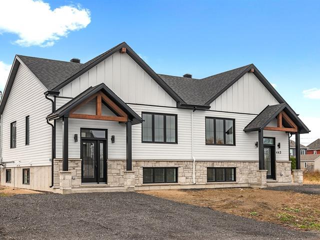 Jumelé modèle en construction, disponible en juin! MNJE vous propose un beau grand modèle de jumelé style FARMHOUSE, 25x34, 1 étage avec sous-sol 100% fini. Inclut 3 chambres, 1 salle de bain avec bain autoportant et douche céramique, de grands walk-in partout, aires de vie ouvertes, cuisine actuelle AD+ avec grand îlot de quartz, la thermopompe, etc.. Demandez les détails! TPS/TVQ doivent être ajoutées au prix demandé (49075972)