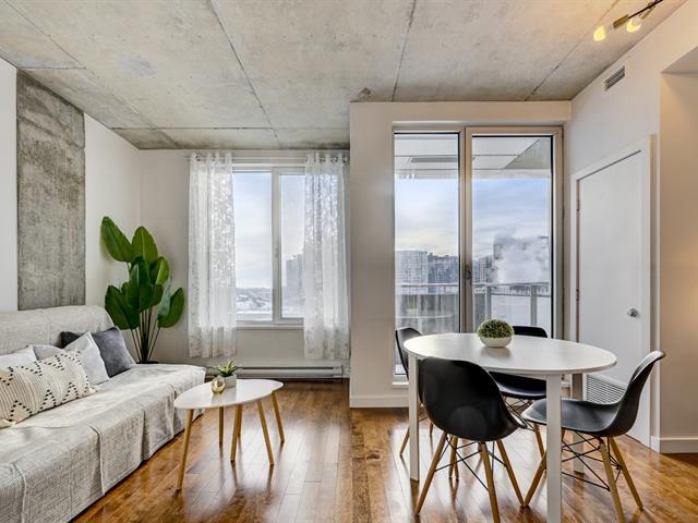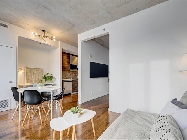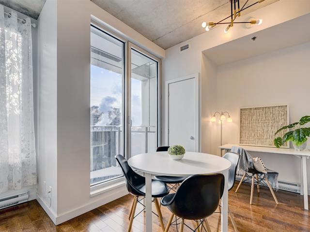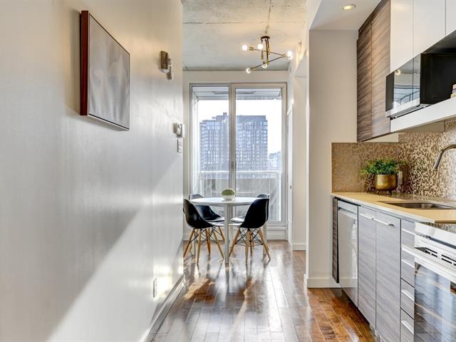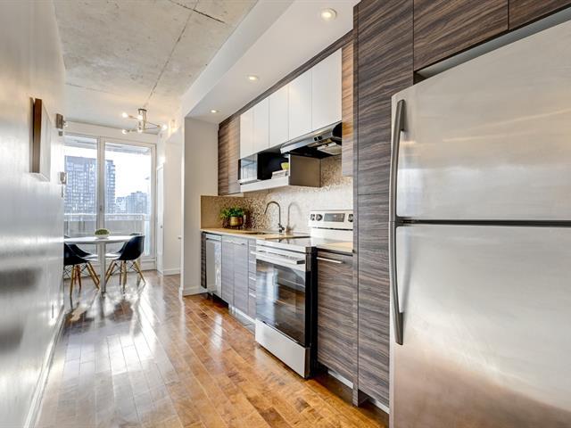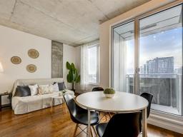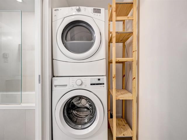 Superbe condo d'une chambre offrant de hauts plafonds, une aire ouverte et des fenêtres pleine hauteur orientées à l'ouest, procurant une luminosité abondante. La cuisine moderne comprend des comptoirs en quartz, des électroménagers en acier inoxydable et beaucoup de rangement. L'espace de vie propose une salle à manger, un coin bureau et un salon confortable. La chambre dispose d'un grand placard, et la salle de bain contemporaine inclut une buanderie et un espace de rangement séparés. Climatisation centrale, balcon privé et stationnement intérieur complètent cette unité urbaine idéale. (50190411)
