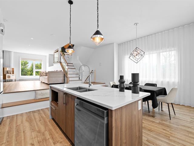 Superbe maison de ville en copropriété sur trois étages, située en coin, dans le prestigieux et écoresponsable quartier URBANOVA à Terrebonne, au sein du très recherché projet MDV3. Nichée dans un environnement privé sans voisin à l'avant ni sur le côté, cette propriété bénéficie d'un emplacement de choix, idéal pour les jeunes familles. Les résidents profitent également d'une piscine creusée chauffée commune ainsi que d'un grand pavillon de piscine. Offrant quatre niveaux, jusqu'à quatre chambres à coucher, une cuisine moderne, terrasse privée sur le toit et une cour arrière privée. Comprend une salle de bain complète et deux salle d'eau. (43467148)