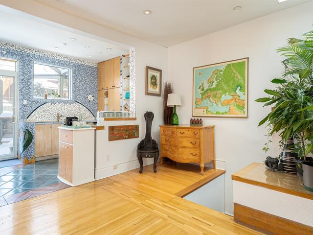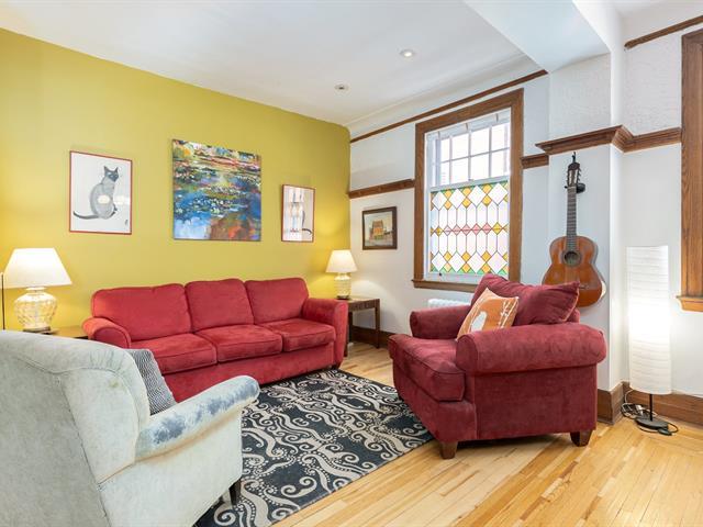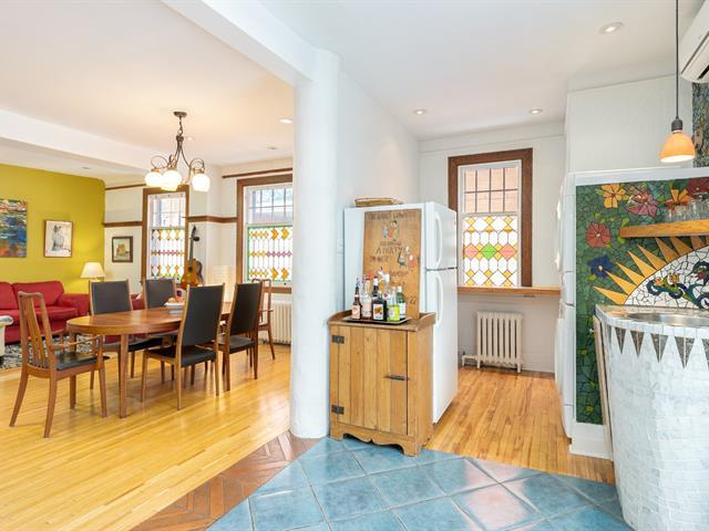 Enfin, un haut de duplex à une minute de marche de Sherbrooke, baigné de lumière sur 3 côtés et au plafond (par 2 puits de lumière)!! De style très coloré et vivant, cet appartement est fait pour la vie urbaine avec un soupçon de vie de campagne avec ses 2 balcons, dont une grande terrasse privée à l'arrière. Le salon devient chambre principale, la chambre avant sert de bureau, la chambre du milieu de salle de musique et tout l'arrière est un concept ouvert salon-salle à manger-cuisine avec coin laveuse-sécheuse près du garde-manger. Portes coulissantes vers la terrasse aménagée. Le sous-sol sert principalement de rangement. Voir addendum (44071035)