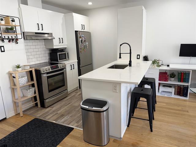 Découvrez ce condo rénové au coeur de Ville-Marie, au centre-ville de Montréal. Lumineux et au goût du jour, il offre une chambre et une salle de bain, idéal pour professionnels ou étudiants. L'immeuble est doté d'un ascenseur adapté à la mobilité réduite et facilite les déménagements. Un garage intérieur est inclus, avec accès à une aire de lavage d'auto. Un Pharmaprix au rez-de-chaussée permet un accès rapide aux services essentiels. Emplacement stratégique près des transports, commerces et principaux axes routiers (54159645)