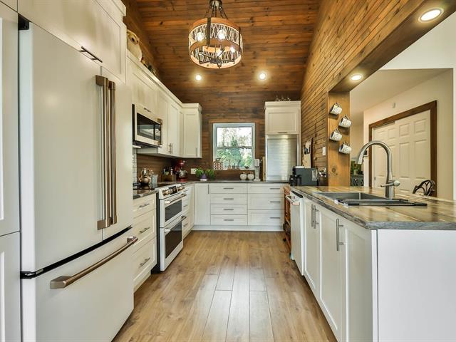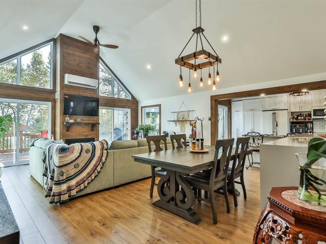 Découvrez cette magnifique propriété de plus de 3 acres, un véritable havre de paix près des sentiers de VTT et de motoneige. 2 chambres dotées chacune d'un walk-in, et une somptueuse salle de bain attenante à la chambre des maîtres. Un salon lumineux avec plafond de 12 pieds et foyer au gaz, une cuisine haut de gamme parfaitement équipée. Une très grande entrée asphaltée, immense garage, cabanon offrant plusieurs possibilités, piscine hors-terre, spa et vaste balcon idéal pour vos réceptions. Terrain bordé par la Rivière du Lièvre, possibilité d'y construire une seconde maison. Pour les amoureux de la nature et des sports nautiques! À voir (56810097)