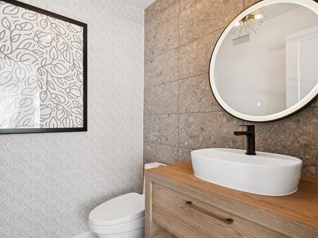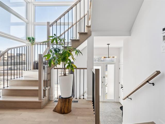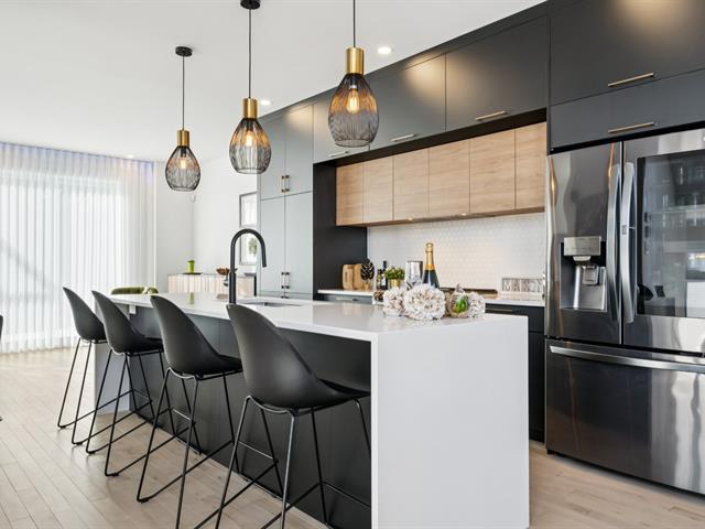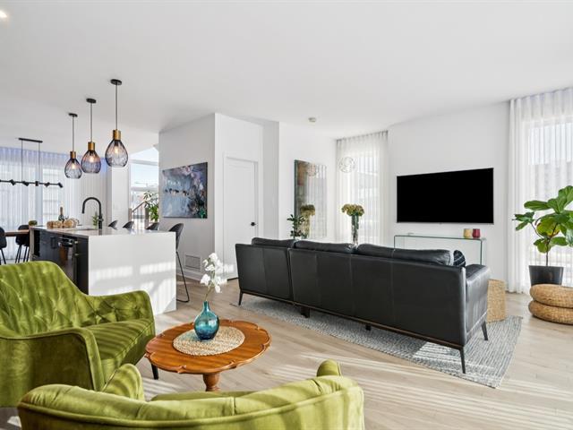 Maison en copropriété sur coin à l'architecture moderne et distinctive, offrant une luminosité exceptionnelle grâce à son orientation plein sud et sa fenestration abondante sur trois côtés. Cette propriété propose des espaces de vie généreux, des finitions haut de gamme, une cuisine soigneusement aménagée, un garage double intégré et une terrasse privée sur le toit. Un cadre de vie élégant et recherché, à seulement 6 minutes de marche de la gare de Candiac, offrant un accès rapide et efficace au centre-ville de Montréal. (46891529)