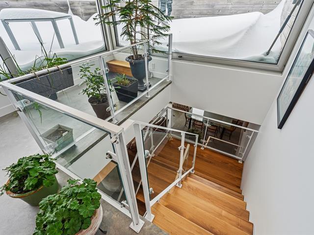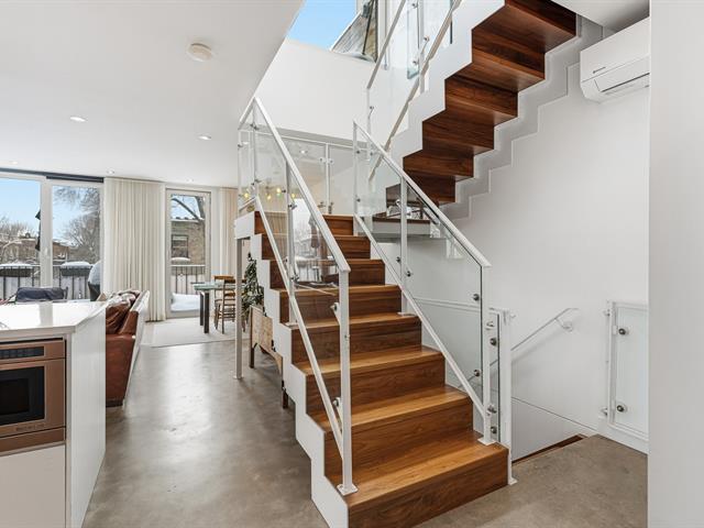 Splendide appartement de coin sur trois niveaux, à l'allure d'une maison de ville, couronné d'une spectaculaire terrasse privée de plus de 350 pi² sur le toit, sur une rue intime à quelques pas du Parc La Fontaine. Écoconstruction certifiée LEED, gage d'un confort énergétique exemplaire avec ses planchers de béton radiant et sa fenestration surdimensionnée. Design épuré, hauts plafonds, superbe escalier contemporain et foyer au gaz. 4 chambres, 2 SdB et une mezzanine fenestrée avec accès à la terrasse, son espace potager et aménagement pour cuisine d'été : le rêve! Une vie de quartier unique près des commerces, écoles, cafés, restos et parcs. (56707510)