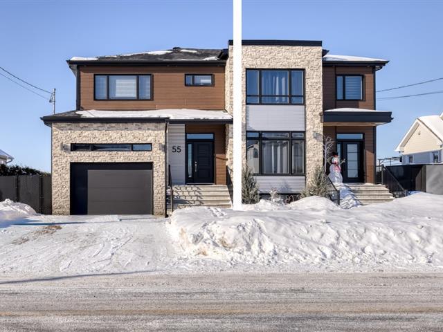 Superbe maison jumelée construite en 2017, offrant un cadre de vie lumineux, moderne et sans voisin à l'arrière. Les espaces de vie à aire ouverte séduisent par leurs planchers de bois et leur fenestration abondante. La cuisine fonctionnelle, dotée d'un îlot central, s'intègre harmonieusement à la salle à manger et au salon. À l'étage, on retrouve trois chambres de bonnes dimensions, dont une chambre principale avec deux walk-in, ainsi qu'une salle de bains complète avec bain et douche indépendante. Cour clôturée, garage chauffé et vue bucolique complètent cette propriété clé en main, idéale pour la vie familiale. (48296002)