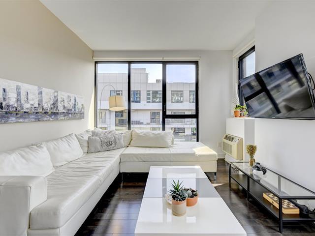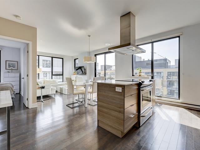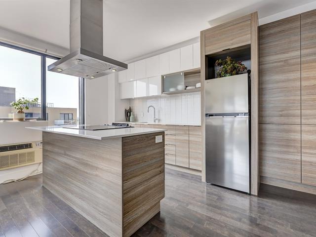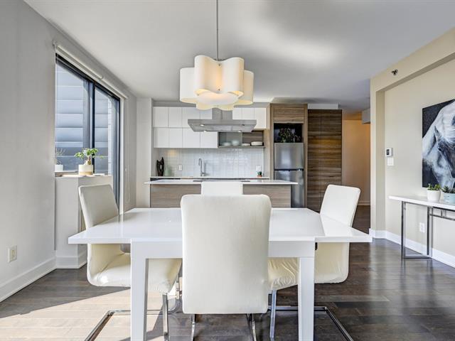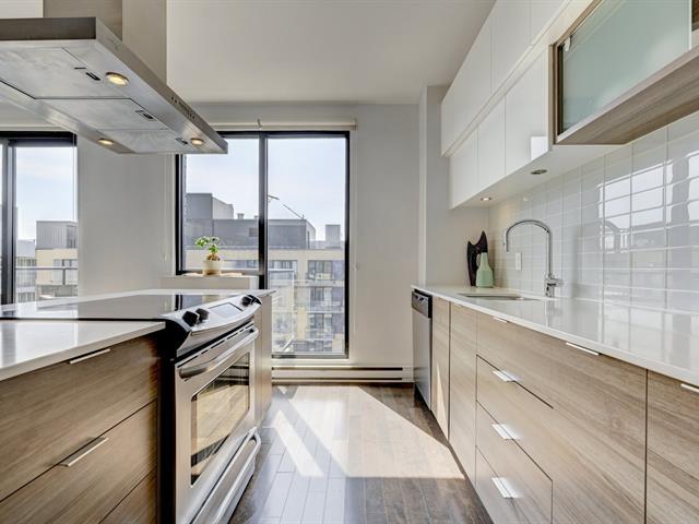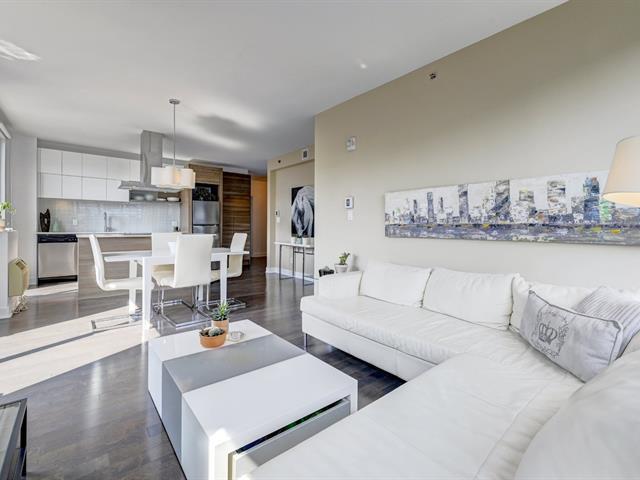Rare unité de coin au dernier étage, en plein coeur de Griffintown! Cet élégant condo de deux chambres comprend une cuisine conviviale avec un vaste îlot central et un salon/salle à manger à aire ouverte, une salle de bain complète avec douche, une salle d'eau et deux balcons privés. Paisible et lumineux, il est fenestré sur deux côtés. Garage et rangement inclus. Profitez de commodités luxueuses: piscines, gym, sauna, terrasse et cour paysagée. Idéalement situé face au futur parc des Eaux-Cachées, à proximité du parc canin, du canal Lachine, du marché Atwater, des transports en commun et des meilleurs restaurants et cafés de la ville. (53858027)
