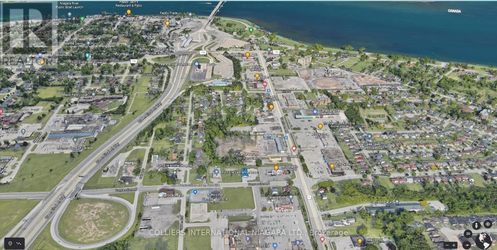 Drive-Thru Pad Site. ±0.356 Acres Redevelopment Site Available for Lease at the busy SW Corner of Concession Road & Walden Boulevard in Fort Erie. Great NEW redevelopment opportunity surrounded by commercial retail businesses and shadow-anchored by a Sobey's Supermarket, Planet Fitness, Ruffin's Pet Store & Shoppers Drug Mart. Offering close & easy QEW Highway access at just 2 kms and Peace Bridge to U.S.A. at Buffalo, NY is just 1.9 kms. C3 Highway Commercial zoning permits many uses, subject to terms & conditions. Many opportunities exist (Build to Suit, Land Lease, Pad Lease). Open for discussion. (34723343)