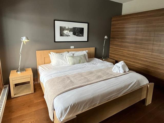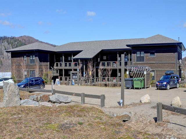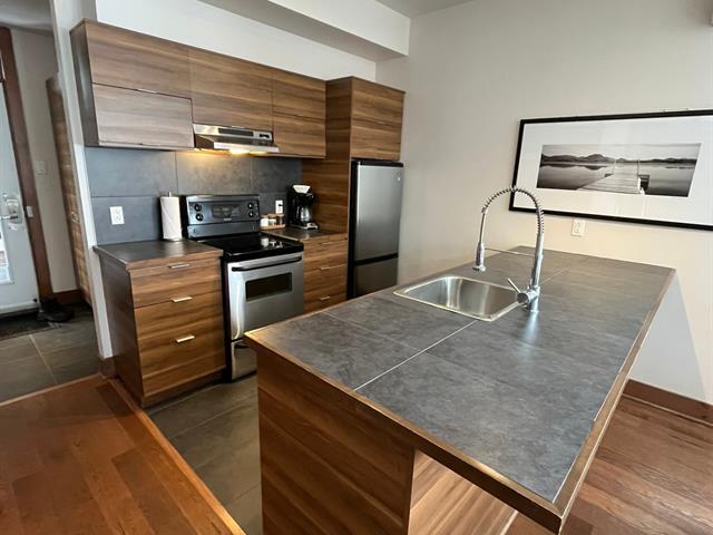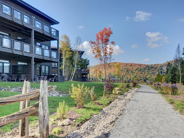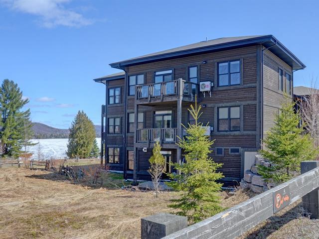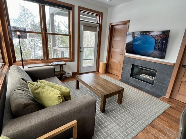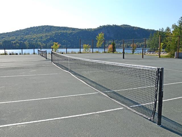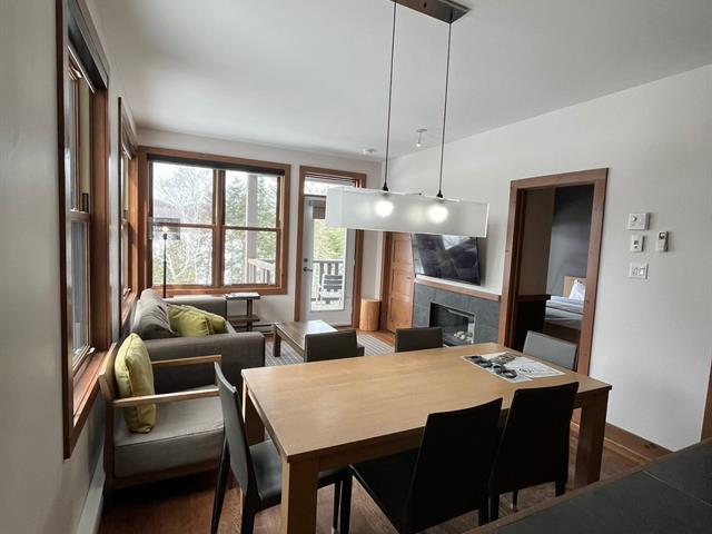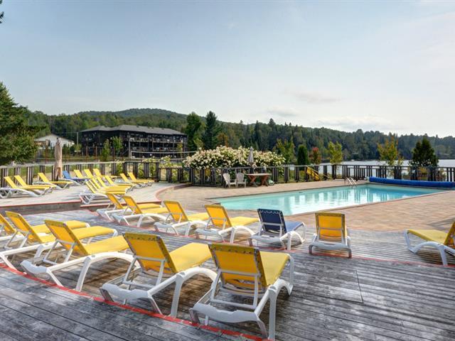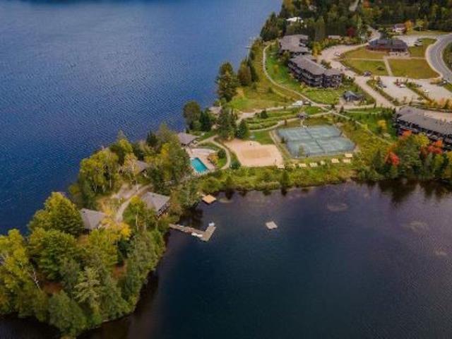 Superb corner unit with spectacular view. This spacious 753 sq. ft. condo offers two large bedrooms (one of which offers bunkbeds) as well as 1.5 bathrooms, all of which can comfortably accommodate 6 people. Property sold furnished and equipped, ideal for short-term rental. Site offering a multitude of amenities: access to Lake Superior, tennis courts, heated swimming pool, exercise room, watercrafts. Located 5 minutes from the north slope of the Mont-Tremblant ski resort and ten minutes from the National Park. GST/QST must be added to the asking price (43814596)