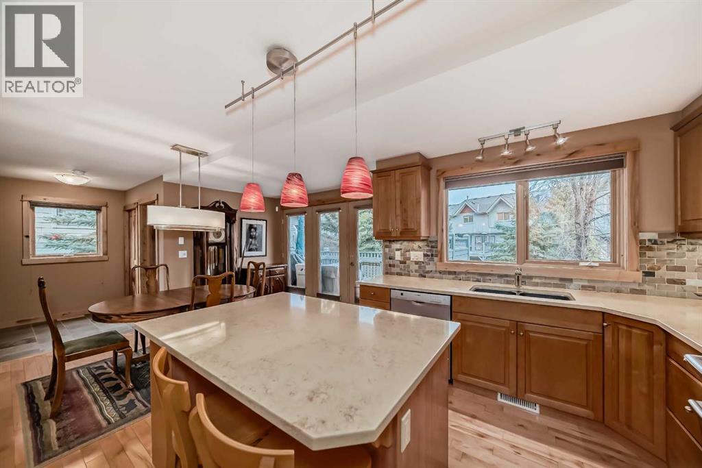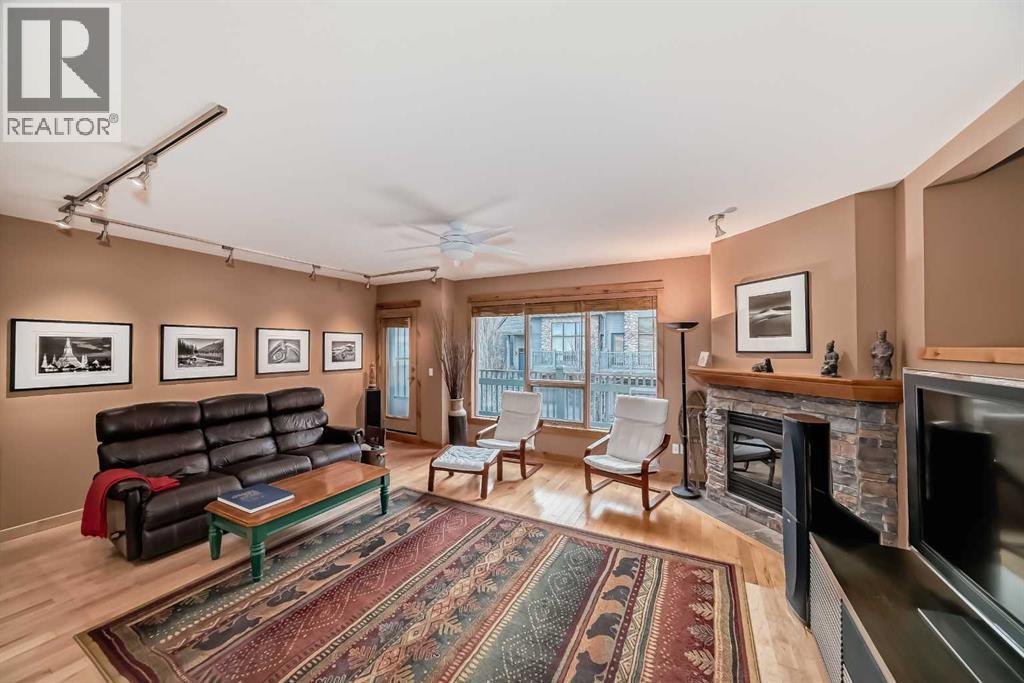 Premium two bedroom Executive Townhome – A Refined Canmore Retreat! Welcome to your perfect two bedroom weekend retreat, or permanent residence, in the heart of Canmore’s exclusive Prospect Heights. This sunny, impeccably maintained, executive townhome offers nearly 2,250 square feet of thoughtfully curated living space, showcasing sweeping mountain views from every window. Tucked away in a quiet, upscale enclave, the location offers both seclusion and accessibility—just steps from the Bow River, Quarry Lake, the Nordic Centre, and endless scenic trails. Downtown Canmore is only a short walk away, making it easy to enjoy local dining, shops, and culture while returning to peace and serenity at day's end. Inside, the expansive living room invites you to unwind by the grand fireplace, framed by soaring windows and opening onto a spacious deck where the mountains feel close enough to touch. The stylish kitchen and adjoining dining area flow seamlessly onto a second deck—ideal for sipping wine or entertaining under the stars. Upstairs, the serene primary suite offers a romantic sanctuary with vaulted ceilings, a cozy gas fireplace, and a spa-like ensuite featuring a Jacuzzi-brand jetted tub, custom honed stone shower, and heated stone floors—every detail designed for relaxation and comfort. The lower level is perfect for hosting guests, with a welcoming bedroom, full bath, and radiant in-slab heating for year-round coziness. A heated, oversized double garage completes the package—ideal for storing all your mountain adventure gear. Whether you're seeking a refined weekend escape or a peaceful full-time residence, this home is an exceptional blend of luxury, location, and lifestyle in one of Canmore’s most desirable communities. (29866135)