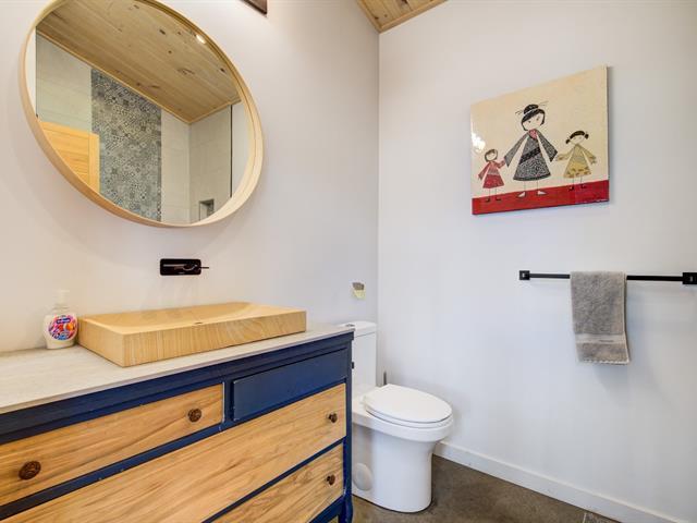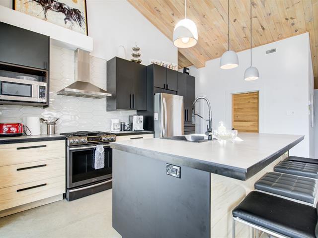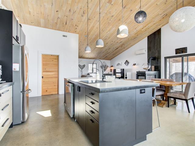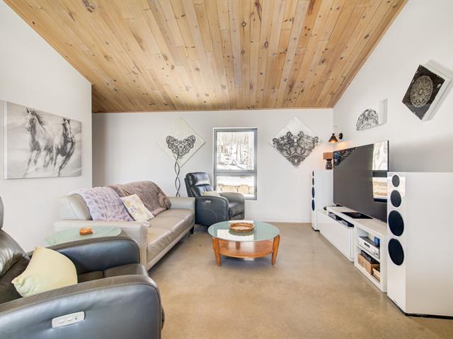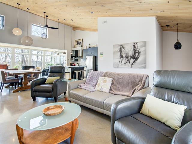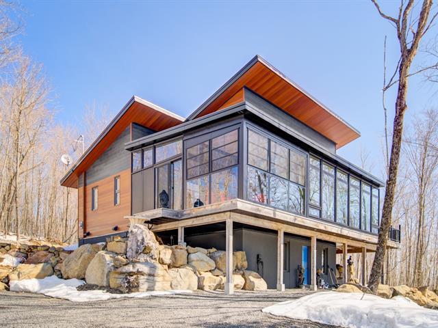 SHORT TERM RENTAL WITH ESTABLISHED CLIENTELE. Discover this welcoming and bright chalet, the ideal place to recharge your batteries. Take advantage of the SHORT-TERM RENTAL option, a rare opportunity for a high-yield investment. Located in the private Sommet estate, this property stands out for its vast open space and magnificent cathedral ceiling on the ground floor. Built in 2020, it has 3 bedrooms and 2 full bathrooms, perfect for entertaining family and friends. You can enjoy direct access to Lake Drummond for swimming or kayaking. Nature enthusiasts will appreciate the nearby hiking trails. Rare opportunity. The Art of Living with Nature (47583601)