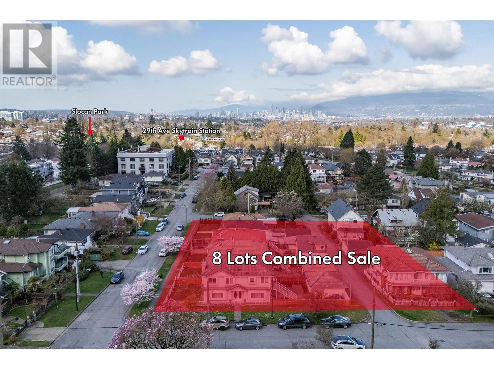 Attention Developers & Investors! This prime property features Rl-1 zoning, permitting development of up to 12 storeys. Ideally located on a quiet street, just steps from Slocan Park and the 29th Avenue SkyTrain Station, and situated within the Transit-Oriented Areas (TOA) Plan. Enjoy convenient access to Kingsway shops, Metrotown, and Downtown Vancouver . The assembled lot totals approximately more than 30,000 SQFT across 9 properties - a perfect opportunity to hold or redevelop. (31133690)