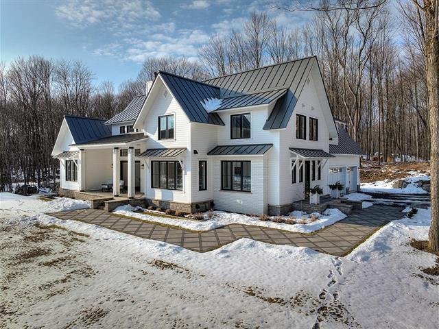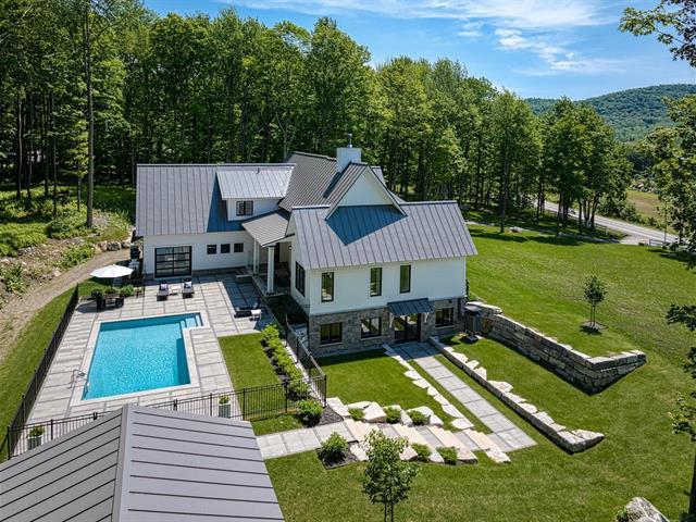 Nestled in the heart of nature on 4.1 acres, this sumptuous modern farmhouse-style residence, built in 2022, embodies elegance and refinement. Offering four spacious bedrooms, four full bathrooms, a powder room, a bright mezzanine, and open living areas, it captivates with its high-end materials and impeccable finishes. The triple garage and in-ground pool add a touch of luxury to this harmonious ensemble. Less than 10 minutes from Bromont mountain, it offers privileged access to the pleasures of nature and outdoor activities. (51986933)