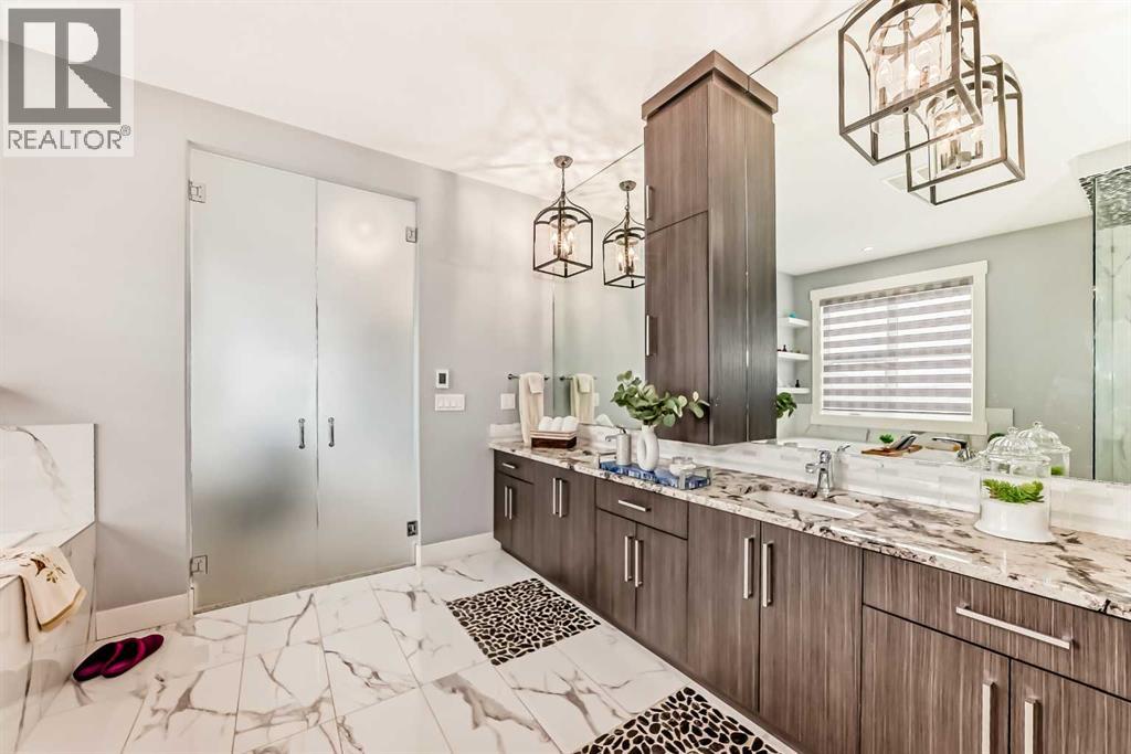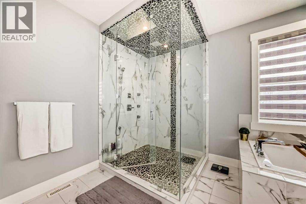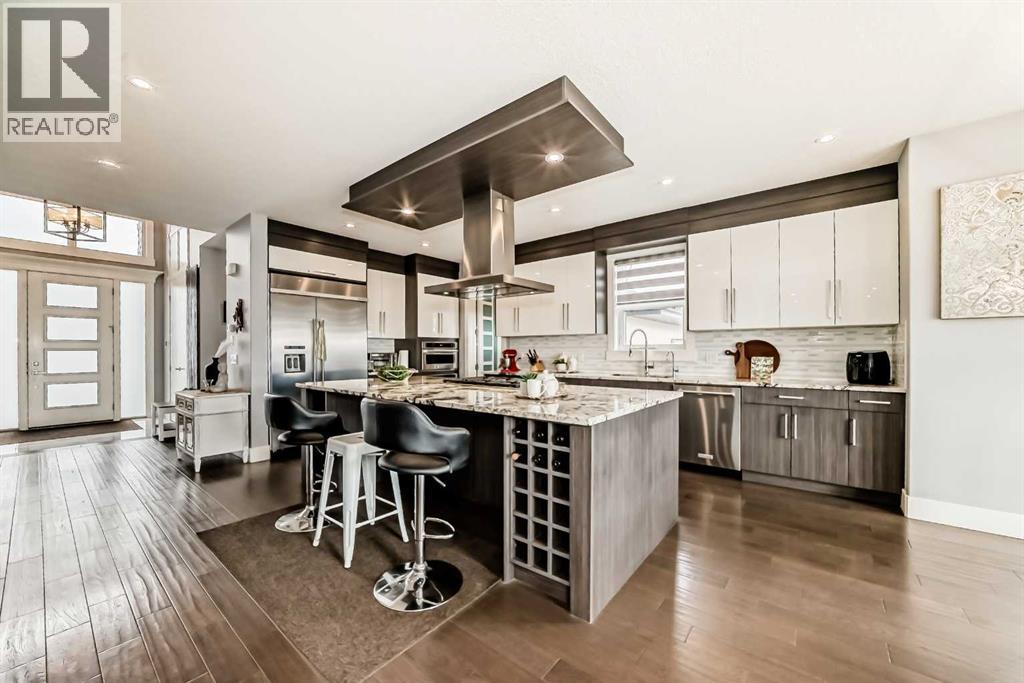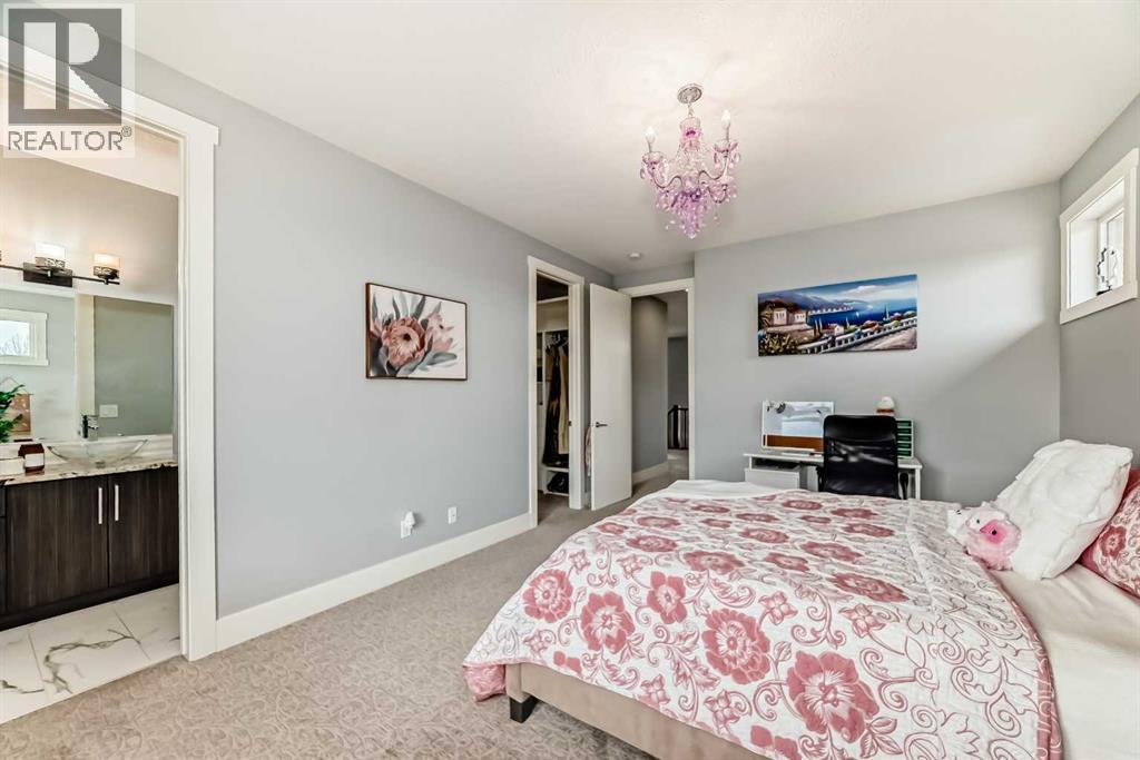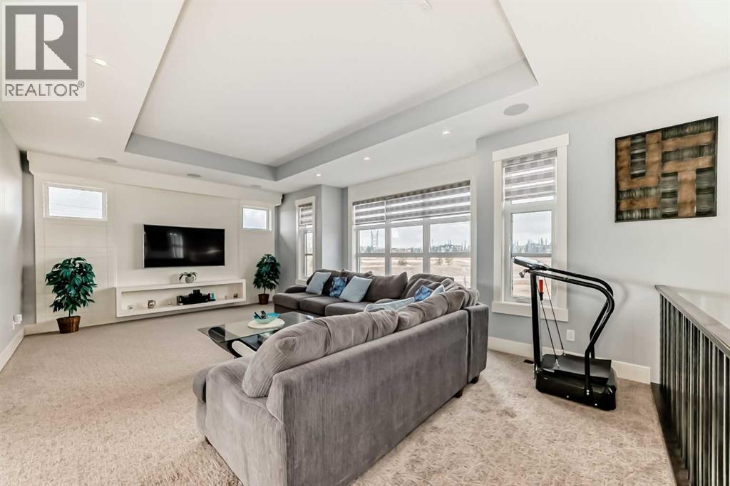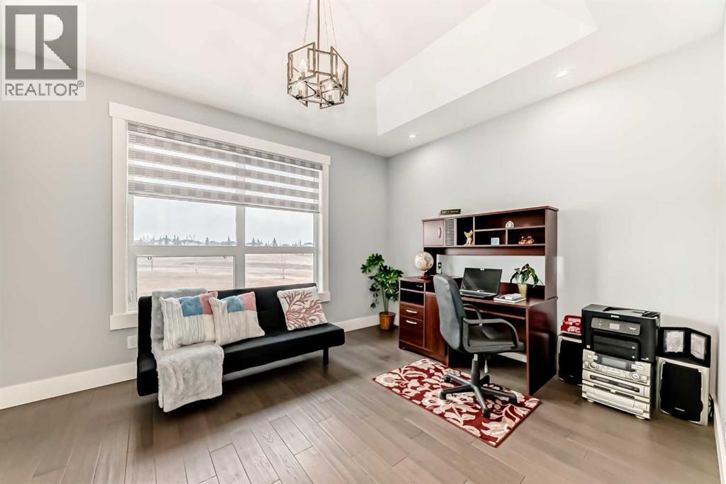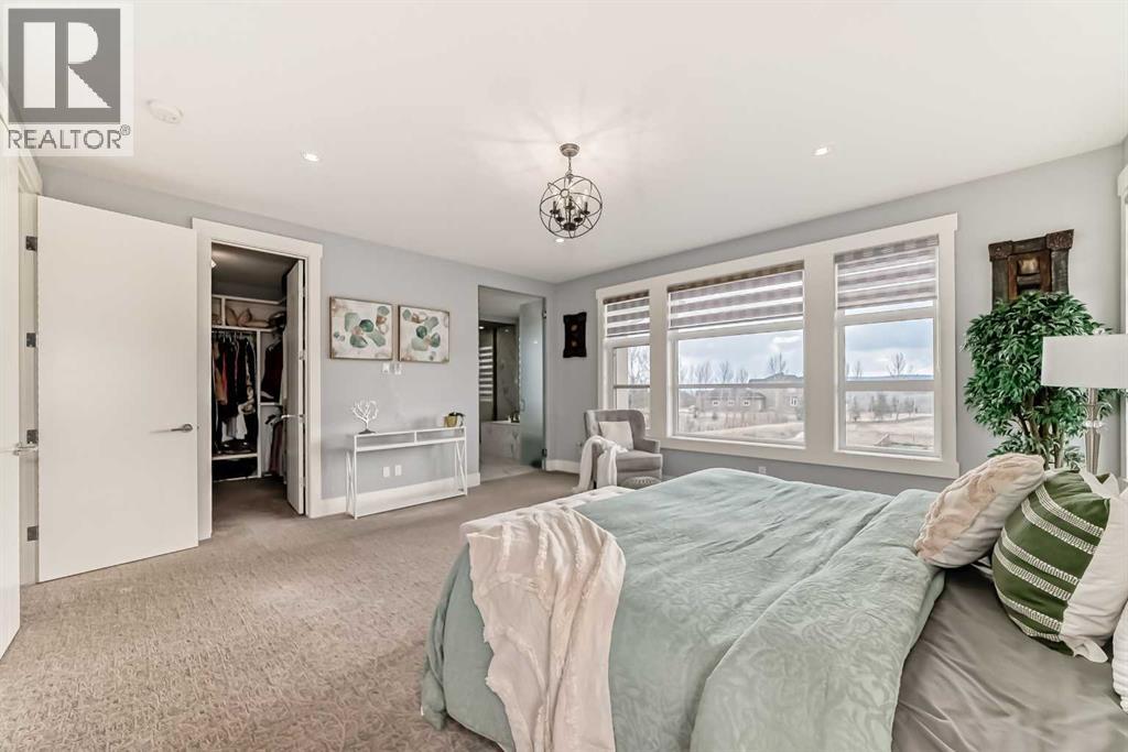 Welcome to this magnificent and bright 2 Storey stylish family home with 5200 sq. ft. of developed space situated on 2.04 acres of exquisitely landscaped property with views of the city, hills. Walking distance to SPRINGBANK Links GOLF COURSE. New SOLAR PANELS on the roof (2023) gives bill credits most of the year, has wireless monitoring so no maintenance. New Professionally developed basement 1473sqft (2024) Walk-Out to enter Patio and beautiful Fire Pit area. Basement Media Room with Barn door and Wet Bar gives relaxed atmosphere to enjoy. Full 4pc bathroom in basement has Double Sinks and Shower with Seat. New Gas Heaters in all Garages (2025). Wireless controlled app for outside Yard Sprinkler systems. Garden lovers will find Fully Fenced Gardens (for Flowers/Rasberries and Vegetable). Lots of young trees that are growing to give more privacy to the yard. Nice Deck, Fire pit area and patio to enjoy your summers.Metal clad Windows. Upstairs Bedrooms are spacious, and bathrooms attached. Primary Bedroom upstairs has Double doors with nicely build Walk-In Closet and ensuite bathroom In-Floor Heating. Bonus Room and Basement Media Rooms have In-Ceiling Speakers that gives clear sounds for music & theatre. The Main floor Office has Vault Ceilings and Double Door entrance. The Dining area has a great Mirror Ceiling with panels that adds luxury and elegance. Centre Island Kitchen with a Huge Single piece countertop adds beauty to the area. The seamless flow between the kitchen, dining, & living spaces creates a harmonious atmosphere that is both inviting and functional, making it the perfect space for family gatherings or entertaining guests. Great location: School bus stop is at Front of the house, SPRINGBANK Middle/High schools only 10min drive, only 20 minutes' drive to downtown and 40 minutes from the Rocky Mountains. (30649501)