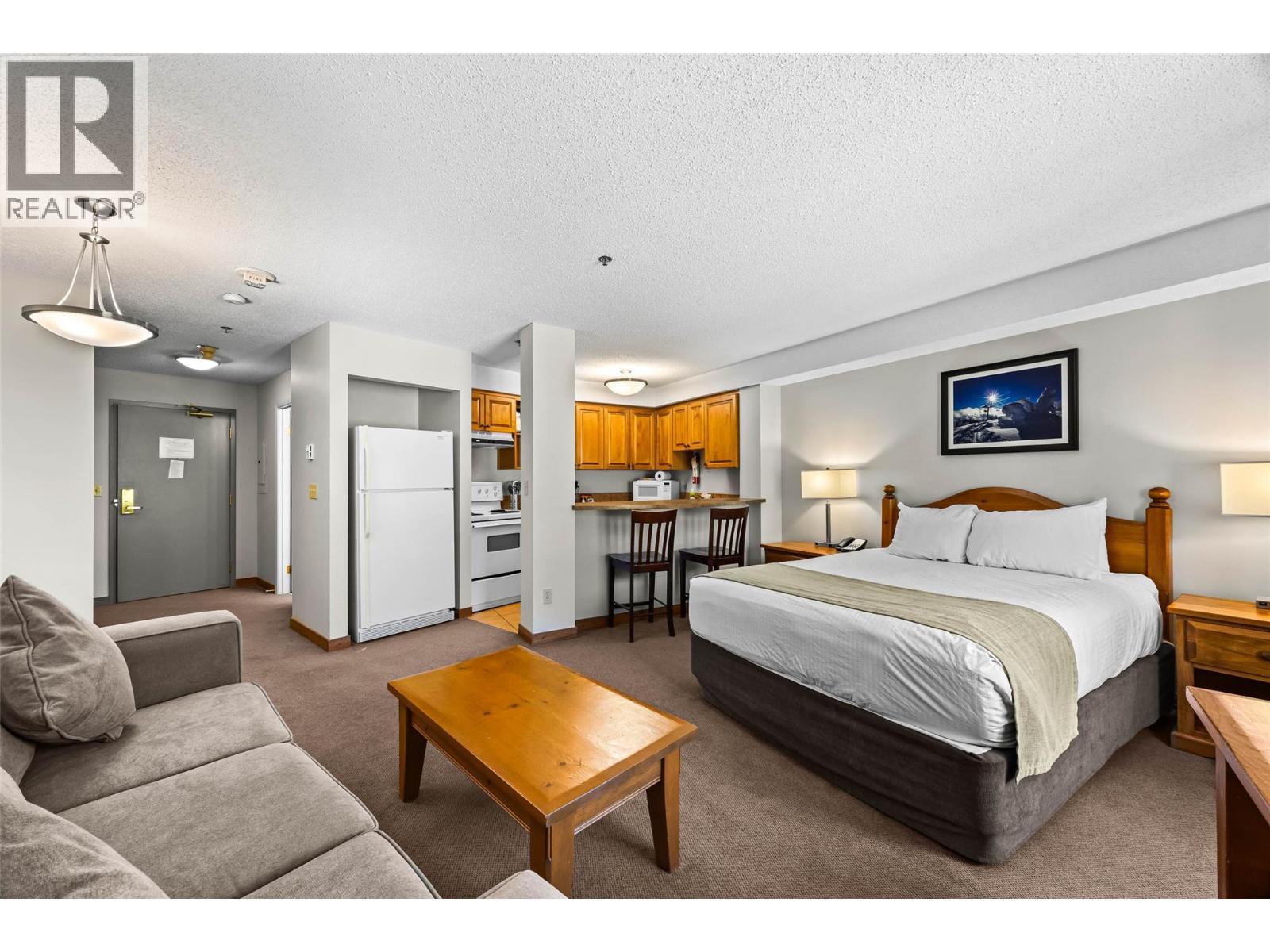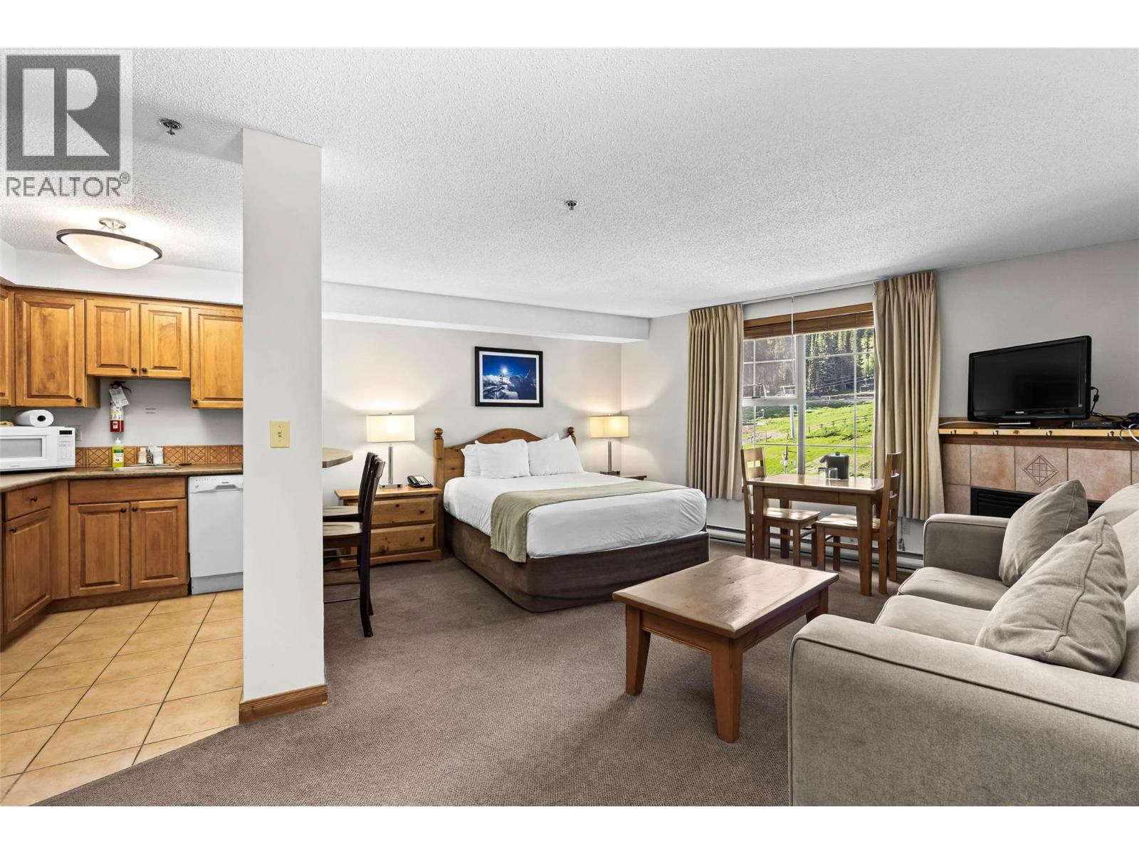 This bright deluxe studio apartment features a fully outfitted kitchen for longer stays, cozy fireplace and an open layout that can comfortably sleep 4. This is a fantastic location where you look out your window with full view of the main lifts and ski runs. This is a prime ski-in, ski-out slopeside location with ski/bike storage room, secure underground parking, hot tub & exercise room, restaurants and easy access to all village amenities. The Sundance Lodge is central to all Resort activities and shopping. Owners have a generous 180 days per year personal use and the comfort of knowing that all is looked after in their absence with front desk management. Offered furnished, GST applicable. (38799670)