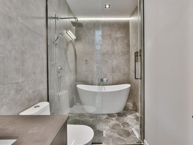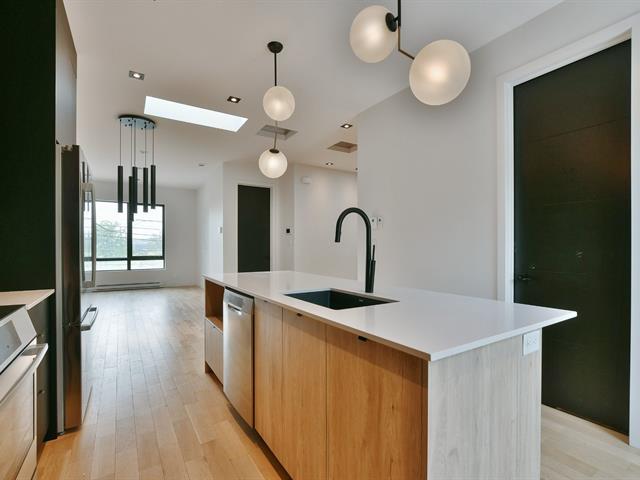 Luxury fully renovated apartment in a sought-after neighborhood, available for rent. Private rooftop terrace with breathtaking views of downtown Montreal. Ideally located near public transit, essential services, and major road access. Contemporary interior filled with natural light from multiple skylights. Features 2 spacious bedrooms, a high-end bathroom with freestanding tub and glass shower, one parking space, and two large terraces. Available immediately. Pets upon approval. (42301564)