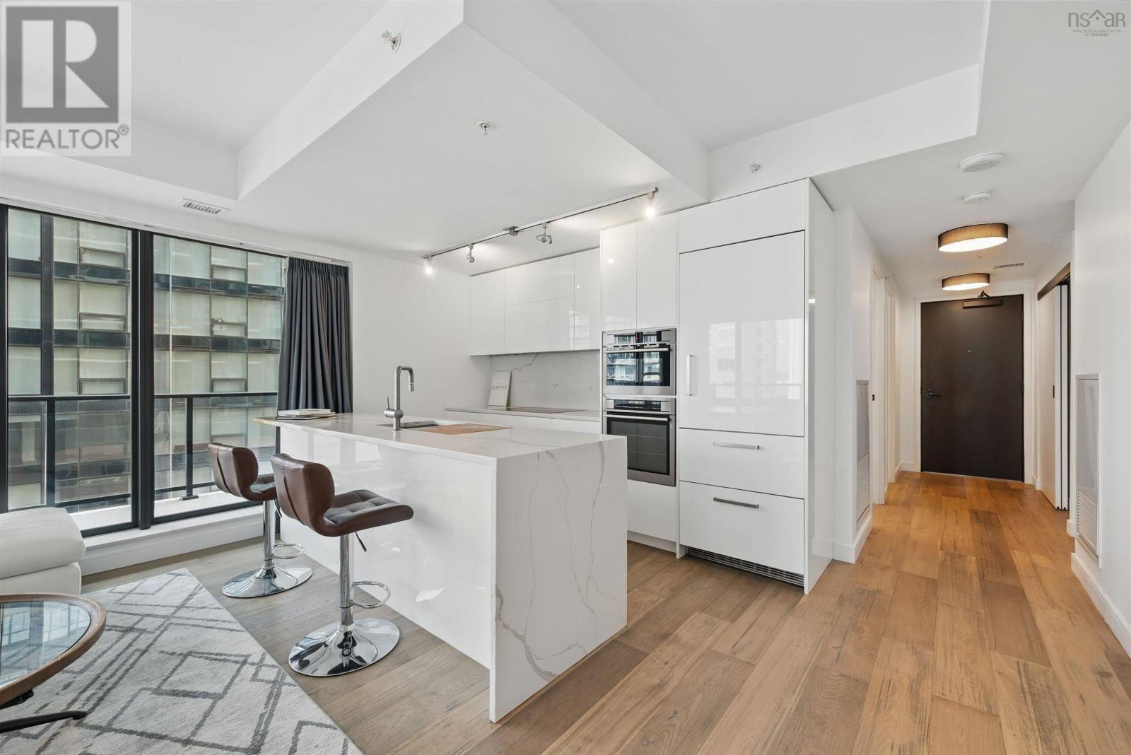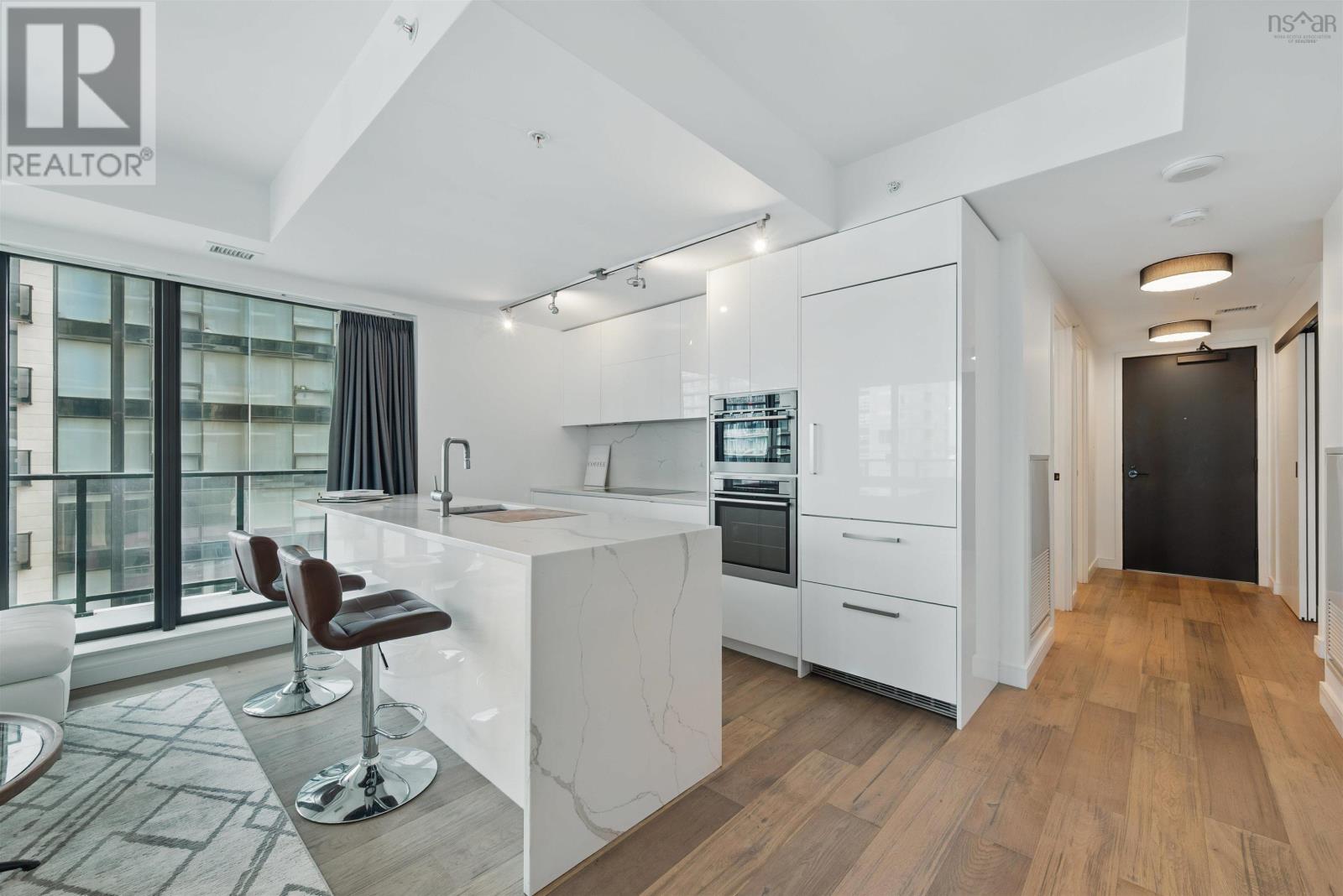 The Roy - Live your best life in downtown! This 2 bedroom plus den condo gives you breath taking city views from the 335 sq foot wrap around terrace where you can relax on a warm summer evening with friends and family and enjoy the hustle and bustle of the city energy. The Roy offers the highest level of service, amenities, fitness and convenience. Each of the spacious bedrooms offers an ensuite bath, there is a dedicated office space, in suite laundry and open concept living room / kitchen. Quartz surfaces in baths and kitchen, beautifully tiled showers, and engineered hardwood throughout. The amenities you will enjoy included with your condo fees are concierge services, gym, treatment room, indoor swimming pool, private theatre, heated above ground parking, also included in your condo fees are common area maintenance, building maintenance, and water. Why not live the life you deserve in Halifax's truly luxurious building. (230981553)
