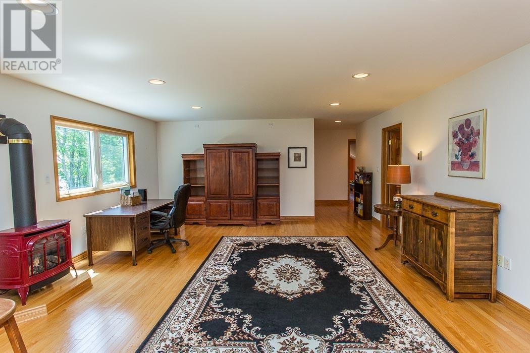Custom-built, meticulously maintained, and perfectly positioned on a double lot, this waterfront home offers year-round comfort and elevated living! Step inside to an expansive great room featuring hardwood floors, cathedral ceilings, and a show-stopping floor-to-ceiling stone fireplace. The open-concept main level includes a spacious kitchen with raised breakfast bar and views of the lake through curved wall-to-wall windows. Garden doors lead to a covered lakeside deck - perfect for morning coffee or summer entertaining. The main-floor primary suite offers a luxurious lakeside retreat with patio access, his & hers walk-in closets, and an ensuite bath with jet tub, double vanity, and separate shower. Additional main-level features include a large dining area, sitting room, living room, half bath, laundry room with double sink, and access to the attached double+ garage. Upstairs, the lofted living space includes a bonus/rec room, large family room and office area with serene treetop views. Two bedrooms, each with a 4-pc bathroom ensuite complete the upper level. The partially finished basement is clean, drywalled, and painted with great ceiling height, divided into open rooms with storage, workshop area, mechanical room, and rough-ins - offering incredible potential to finish to your needs. A true Northern Ontario gem built for relaxed elegance, entertaining, and life on the water. With full town services including natural gas and cable, and convenient access to the highway and all town amenities, yet a world away from the ordinary at this exclusive peninsula location in Lake Huron. (28771359)