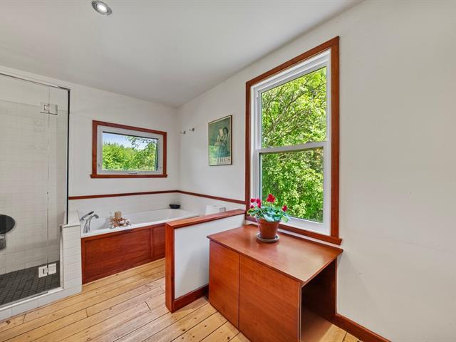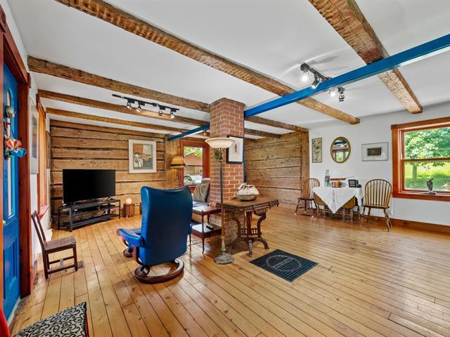 Located in Estrie, here is a house over-century-old house of 2000 squarefoot, on a nearly deserted road, combining the patina of the past with the comfort of modernity with major high-quality renovations. A single neighbor, invisible from more than 100 meters away. An agriculturally zoned estate of over 60 acres, a remarkable forest, an old-fashioned sugar shack, a wild pond hidden in the woods, dazzling starry nights, and a silence that can safely be described as deafening. And all this, seven minutes from civilization! Property with 3 bedrooms upstairs, dining room and kitchen with open-concept, large living room on the 1st level. (50775765)
