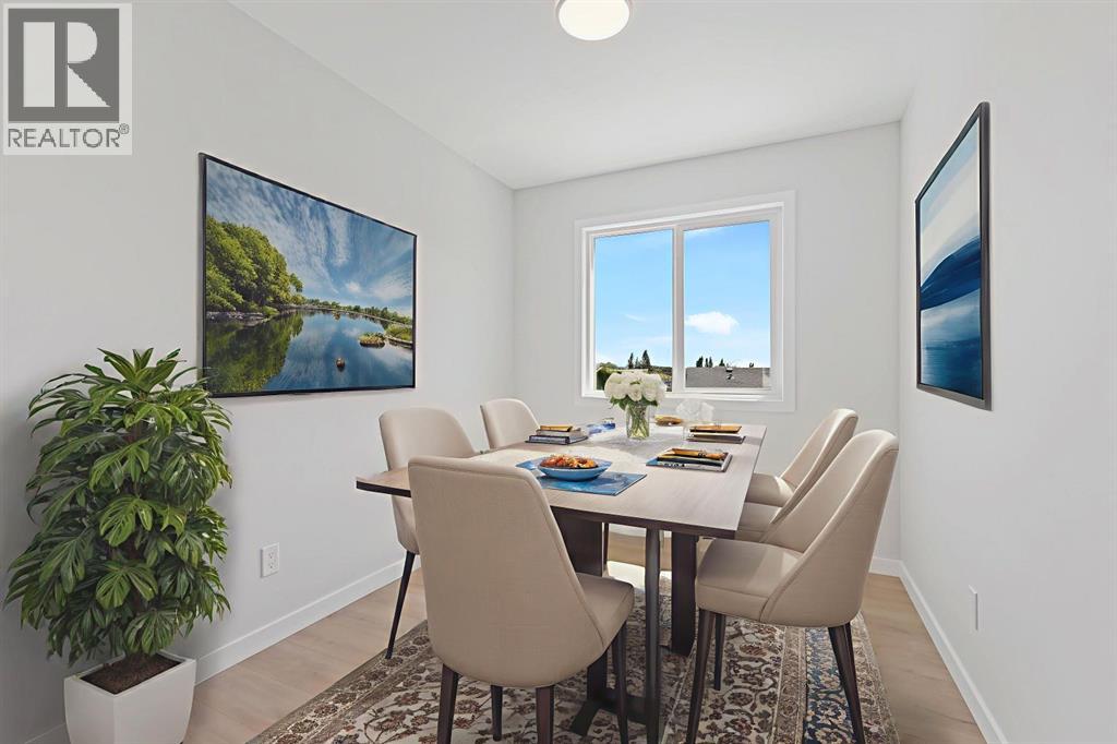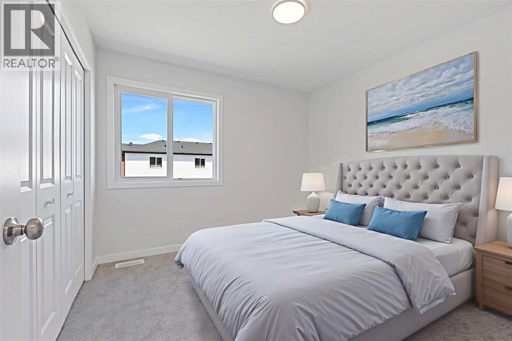 Welcome to this stylish and affordable freehold townhouse with no condo fees, built by Jonboyz Construction, a reputable local builder in Didsbury. Located in the desirable community of Valarosa, this home offers nearly 1,300 sq ft of functional living space with thoughtful design and family-friendly features.The main level includes an attached garage, utility room, and direct access to the backyard — offering both practicality and convenience. Upstairs, the bright and spacious main floor boasts an open dining area, cozy living room, and a modern kitchen complete with white soft-close cabinets, white quartz countertops, a pantry, and vinyl plank flooring in a warm, neutral tone. This level also includes a 2-piece bathroom and access to your private rear deck — ideal for relaxing or entertaining.On the third floor, you’ll find two generously sized bedrooms, a 4-piece bathroom, and a convenient upstairs laundry room. The primary bedroom features dual closets, providing excellent storage space. Carpet flooring adds warmth and comfort to the bedrooms and hallway.This townhouse offers a spacious backyard, and front yard — a rare find. The builder will also be including a fully fenced backyard, providing privacy, security, and a safe space for children or pets. Located just steps from a scenic protected forest area with walking paths and local wildlife, and close to a playground and baseball diamond, this home is perfect for families looking for space and community.Don’t miss your chance to own this well-crafted home in a peaceful, family-oriented neighborhood. (30802592)