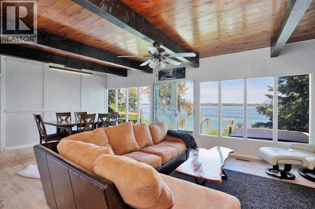Welcome to your dream lakeside escape! This beautifully renovated four-season cabin is move-in ready and packed with charm, comfort perfect for weekend getaways or year-round living. Step inside to find fresh new paint, new countertops, new lighting, all-new plumbing, renovated bathroom, new on demand hot water tank, new roof, and stylish new flooring throughout. The open-concept living space blends rustic charm with modern touches, creating a warm and inviting atmosphere for relaxing or entertaining. Step outside to your private deck, where a hot tub awaits—ideal for soaking under the stars after a day on the lake. Down by the water, the boathouse offers ample storage but could easily be transformed into a lakeside cabana bar—imagine summer evenings spent with friends and family just steps from the shore. Located on the shores of stunning Sylvan Lake, this property offers easy lake access, gorgeous views, and a lifestyle you won’t want to leave. Don’t miss this rare opportunity to own this renovated four-season cabin in one of Alberta’s most desirable lake communities! Sellers are willing to sell all furniture as well (30847461)