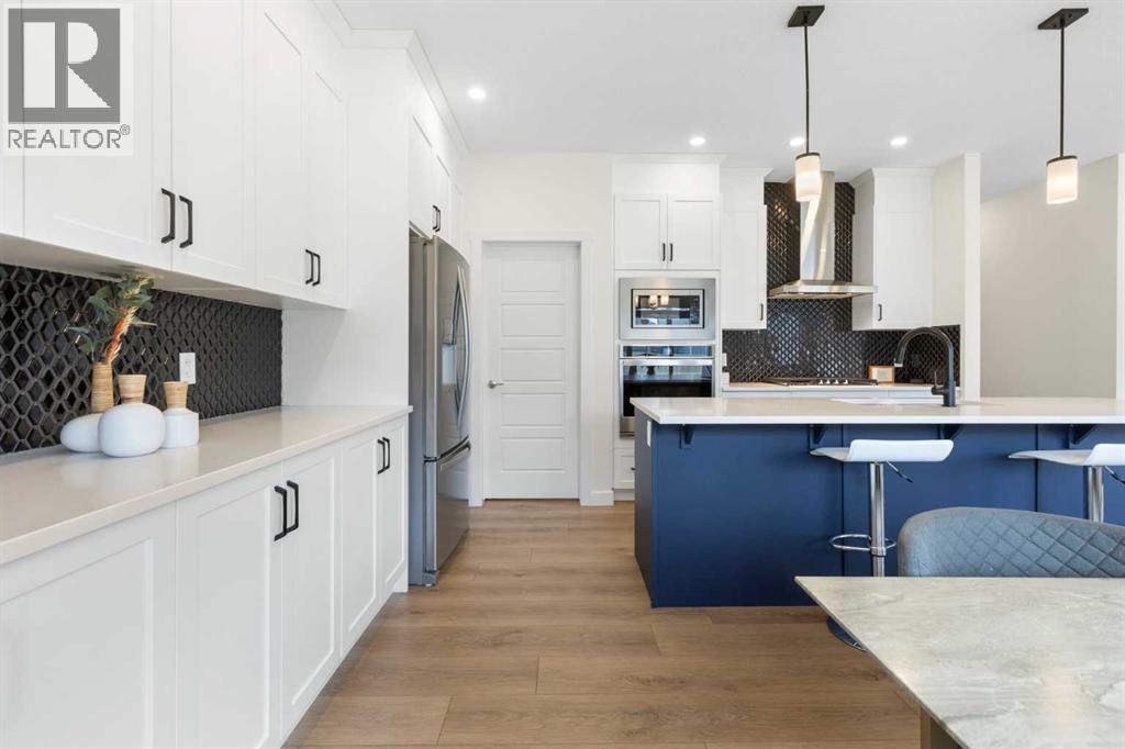 OPEN HOUSE on SUNDAY December 7 from 11 am to 1 pm. Welcome to this modern 4-bedroom home! Offering over 2,250 sq. ft. of refined living space, this beautifully crafted residence includes central air conditioning for year-round comfort. The open-concept kitchen features sleek quartz countertops, a walk-through pantry, and flows seamlessly into the inviting great room with a cozy fireplace. Upstairs, discover four spacious bedrooms—including a serene primary retreat with a spa-inspired ensuite—a versatile loft, and a main-floor office, providing the perfect blend of space, style, and functionality. Three beautifully finished bathrooms, wide vinyl plank flooring, and contemporary finishes throughout add sophistication and ease. The west-facing backyard invites golden afternoon light, while the double attached garage offers everyday convenience. Nestled in the peaceful, family-oriented community of Bayside—known for its picturesque canals and scenic walking paths—you’ll be minutes from parks, schools, and local amenities. This is a home where elegance meets everyday living. Quick possession available. Don't miss this opportunity call today. (30900247)