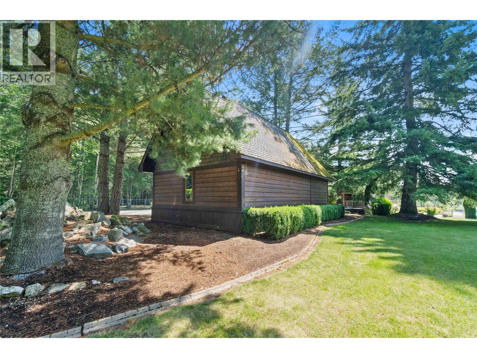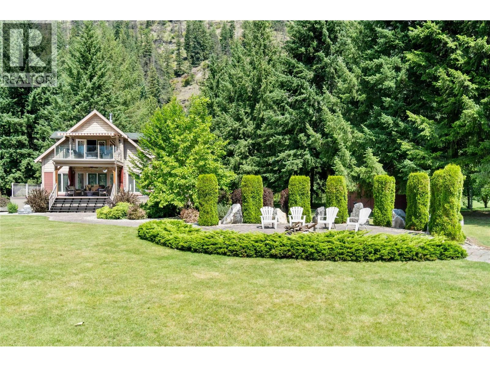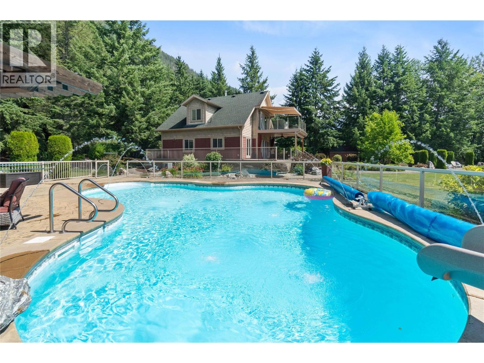 A once-in-a-lifetime turnkey opportunity offering unmatched privacy and recreation—all within town limits. This gated 4-bedroom, 3-bath chalet-style home sits on a beautifully landscaped property with direct river access to Shuswap Lake. Enjoy every outdoor activity from your doorstep—boating, fishing, swimming, ATVing, snowmobiling, walking, and cycling—with a marina and restaurant just down the road. The home features a wraparound concrete deck with glass railing, propane-plumbed BBQ, and both upper and lower-level fire tables. A paving stone patio surrounds a cozy wood-burning fire pit. The detached garage/workshop provides secure indoor parking, while the extensive paved areas offer ample space for vehicles, trailers, and the 30-amp serviced RV site. Relax in the in-ground pool with poolside bar, change room, bathroom, mechanical room, and a hot tub. The grounds are a true showpiece—extensively irrigated and beautifully landscaped with fruit and native trees, plus two matching sheds for additional storage. An incredible opportunity to own a private retreat with all the comforts of in-town living. Call today to book your private tour. (39023400)
