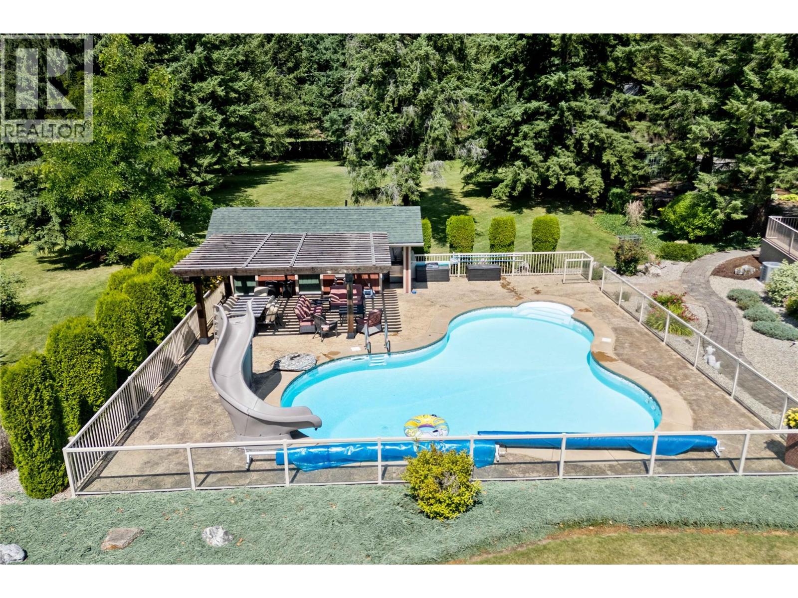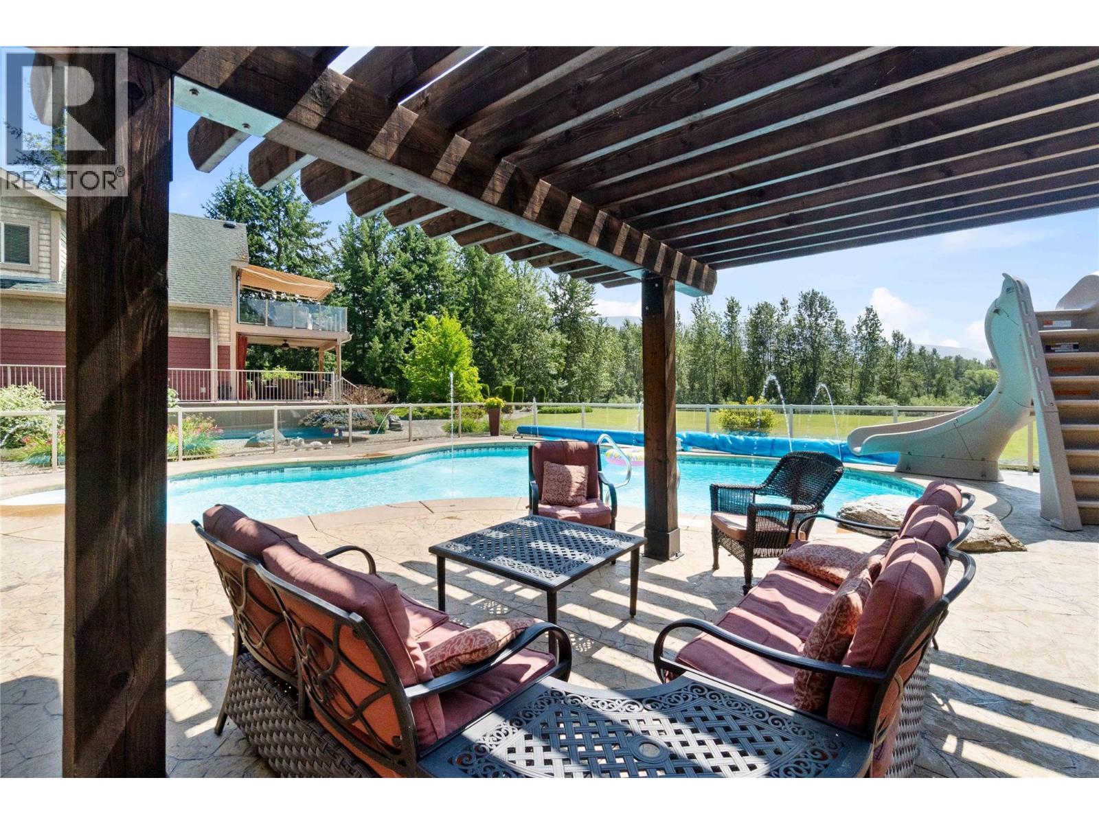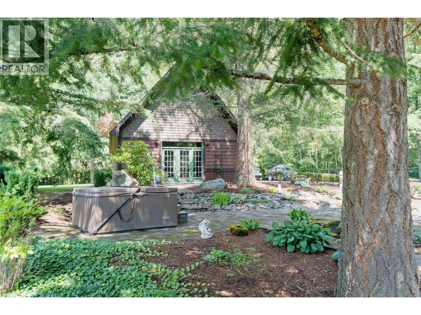 A once-in-a-lifetime turnkey opportunity offering unmatched privacy and recreation—all within town limits. This gated 4-bedroom, 3-bath chalet-style home sits on a beautifully landscaped property with direct river access to Shuswap Lake. Enjoy every outdoor activity from your doorstep—boating, fishing, swimming, ATVing, snowmobiling, walking, and cycling—with a marina and restaurant just down the road. The home features a wraparound concrete deck with glass railing, propane-plumbed BBQ, and both upper and lower-level fire tables. A paving stone patio surrounds a cozy wood-burning fire pit. The detached garage/workshop provides secure indoor parking, while the extensive paved areas offer ample space for vehicles, trailers, and the 30-amp serviced RV site. Relax in the in-ground pool with poolside bar, change room, bathroom, mechanical room, and a hot tub. The grounds are a true showpiece—extensively irrigated and beautifully landscaped with fruit and native trees, plus two matching sheds for additional storage. An incredible opportunity to own a private retreat with all the comforts of in-town living. Call today to book your private tour. (39023400)