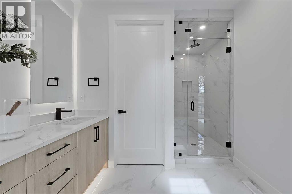 Modern luxury meets timeless charm in this beautifully crafted semi-detached home in the heart of Mount Pleasant. Offering over 1,900 sq. ft. of thoughtfully designed living space above grade, this 3-bedroom, 2.5-bathroom residence blends high-end finishings with family-friendly function and a legal secondary suite (pending final inspection) with 2 bedrooms, 1 bathroom, over 800 sq. ft. of living space, all just steps from Confederation Park and the vibrant 4th Street corridor.The main floor welcomes you with soaring 10’ ceilings, engineered hardwood floors, and custom millwork throughout. The open-concept living and dining area is anchored by a sleek gas fireplace with built-in shelving and large sliding glass doors that open to a bright facing backyard, perfect for indoor-outdoor living.The chef’s kitchen is a showstopper, complete with premium stainless steel appliances, a custom range hood, quartz countertops, a central island with seating, and full-height cabinetry.A pocket office with a built-in desk and shelving is located near the front and at the rear, a mudroom with built-in storage keep day-to-day life organized and clutter-free.Upstairs, the primary retreat impresses with vaulted ceilings, a large walk-in closet, and a spa-like ensuite with heated tile floors, dual vanities, a glass shower, freestanding soaker tub, and private water closet. Two additional bedrooms with custom closets, a laundry room with sink and cabinetry complete the second floor.This home also features a 2-bedroom legal secondary suite (pending final inspection), offering its own private side entrance for added privacy and independence. Designed with the same elevated finishings as the main level, the suite includes a stylish full kitchen, open-concept living and dining area, a sleek 4-piece bathroom, and dedicated laundry with a built-in sink. Whether you're accommodating extended family, welcoming long-term guests, or exploring rental opportunities, this flexible space adds bo th function and future value.Located on a quiet, tree-lined street in one of Calgary’s most sought-after communities, you’re just steps from parks, walking paths, top-rated schools, and popular local spots like Velvet Café, 4th Spot Kitchen & Bar, and Milk Ice Cream. Quick access to 16th Ave, 14th Street, and transit makes commuting a breeze.This is your opportunity to own a brand new, upscale home in a neighbourhood that truly has it all. (30950604)