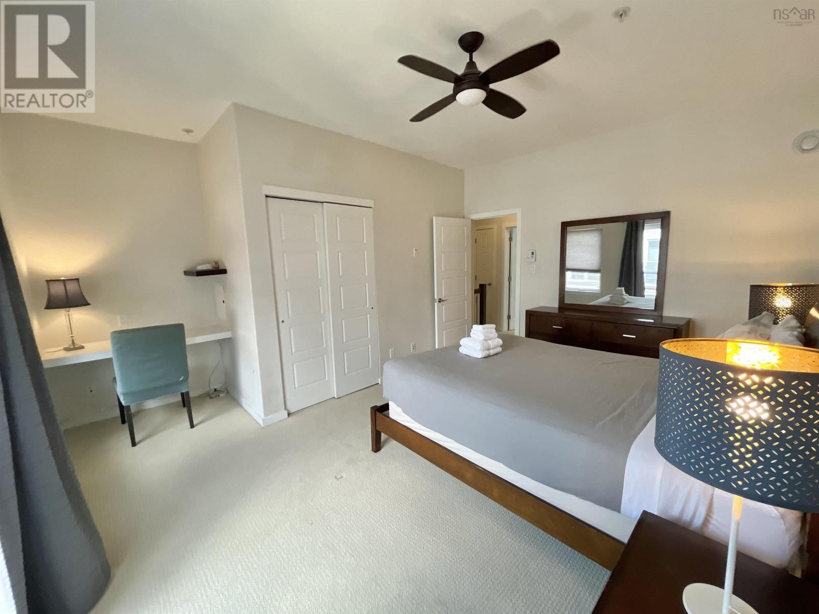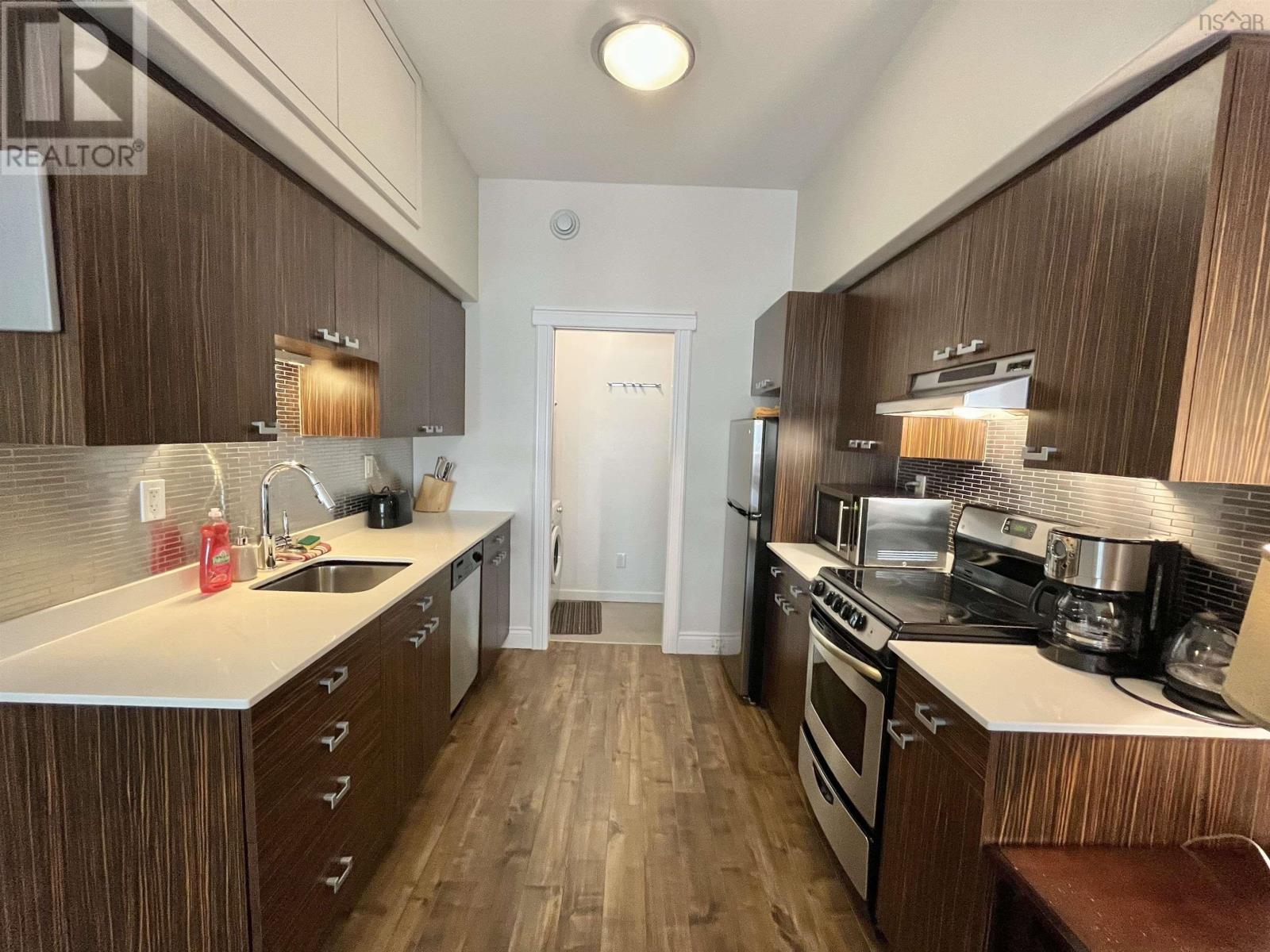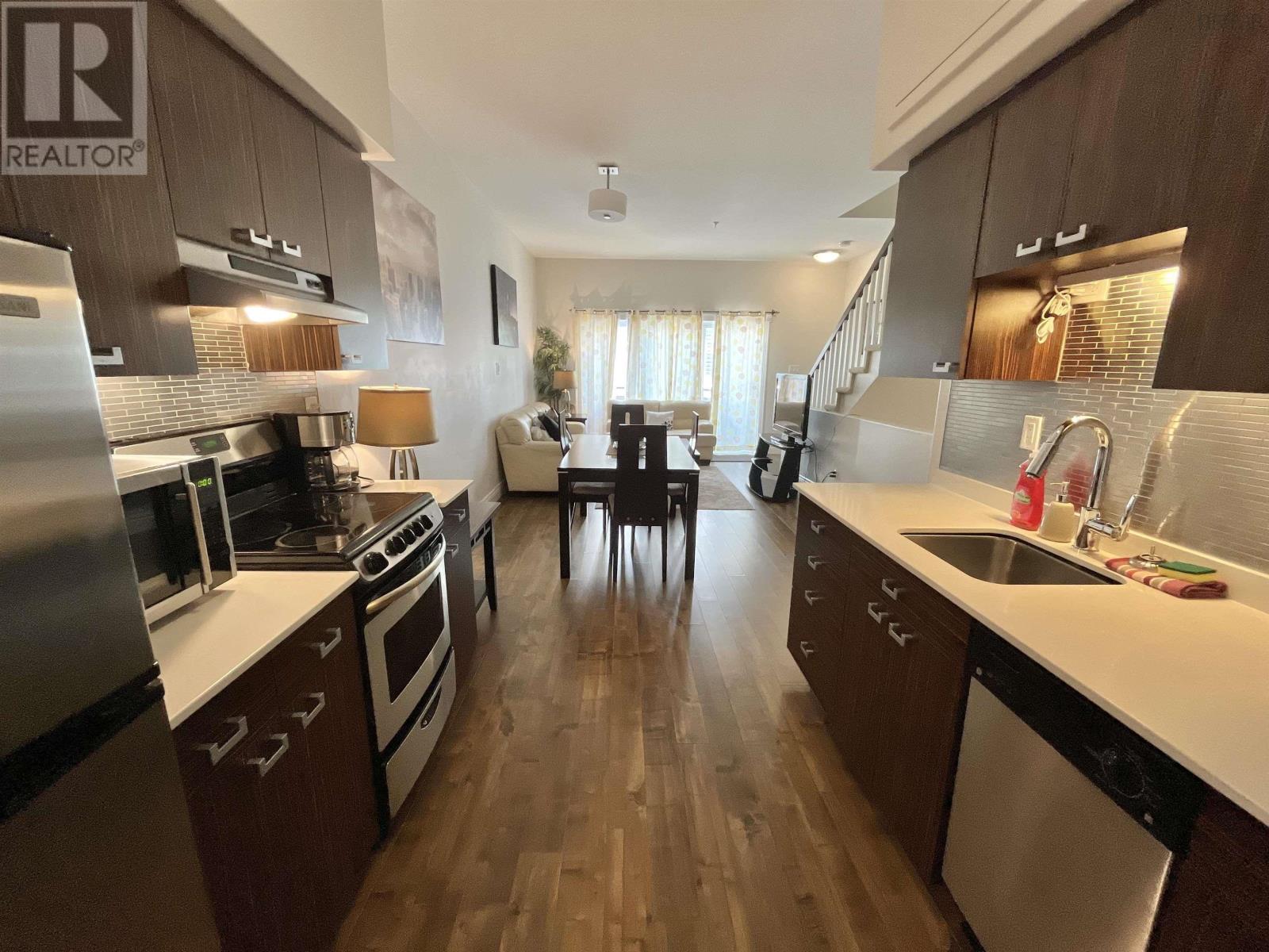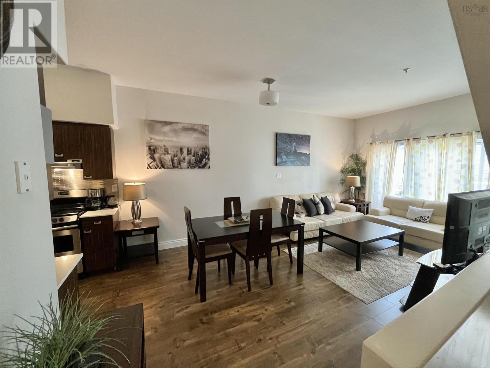 Urban Style Meets Comfort in the Heart of Halifaxs North End Welcome to Theatre Lofts, a boutique, loft-inspired building blending modern design with an unbeatable location. This bright 2-level townhouse-style condo offers 1,005 square feet of thoughtfully designed living space, just steps from cafes, restaurants, shopping, downtown, and the Halifax Commons. Inside, elegant and modern furnishings set the tone for an open-concept main level, where the living and dining areas flow together. Large windows fill the space with natural light. This level also features a convenient half bath and in-unit laundry. Suite 305 boasts two generous bedrooms, each with ample closet space, and a full four-piece bath. The layout is ideal for professionals, small families, or those seeking a flexible work-from-home setup. Building amenities include a landscaped courtyard, a deeded parking spot in the heated underground parking (with a separate PID), deeded storage space and a live-in superintendent. The pet-friendly policy (with board approval) makes this home a rare find for animal lovers. Condo fees of $398.42/month include water, common area maintenance, and more. Completely furnished, the property is truly move-in ready, perfect for students, corporate stays, or investors looking for a turn-key rental opportunity. All furnishings can remain, or be removed at the buyers preference. Located in Halifaxs vibrant North End, youre minutes from the waterfront, theatres, nightlife, and transit, perfect for embracing everything the city has to offer. (231256866)