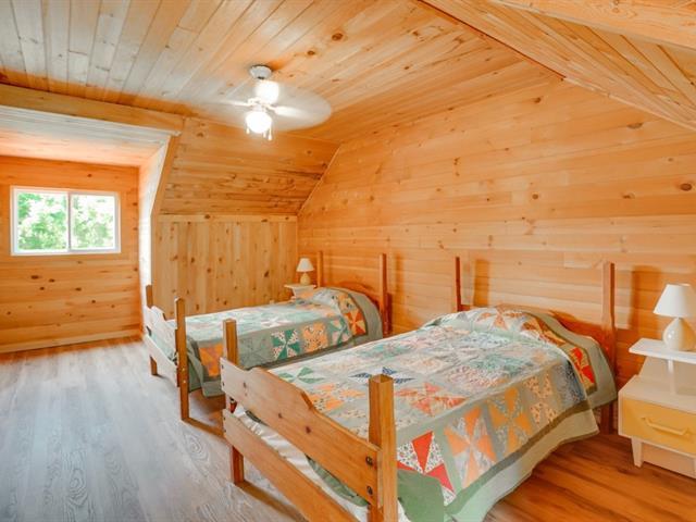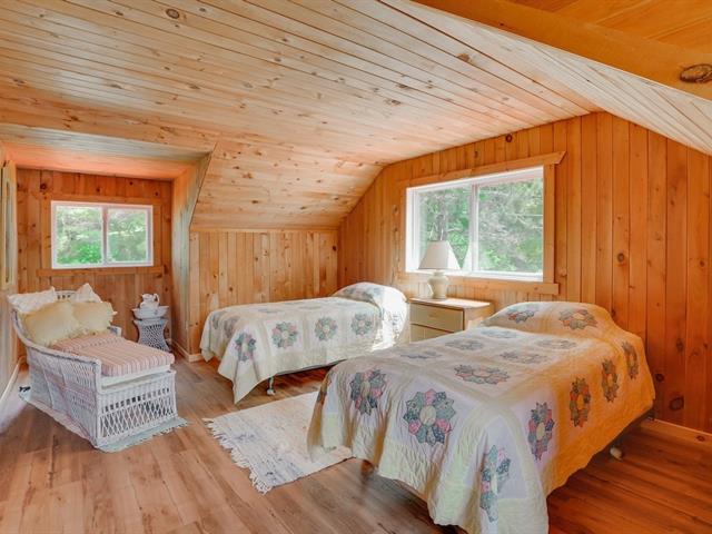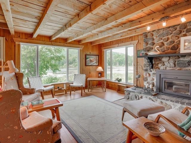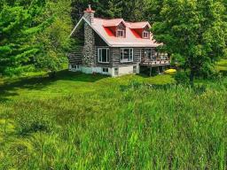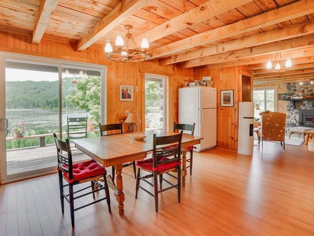Wake to loon calls at this spacious Canadiana log home with screened verandah, large deck, and walkout basement, minutes from Mont Ste-Marie ski, golf, tennis, and Lac Ste-Marie village. On pristine, no-motor Lac du Brochet, enjoy nature at its finest. Main floor offers 3 bedrooms, full bath, fireplace, and open kitchen/dining. Upstairs has 2 large bedrooms and central living area. Basement with high ceilings, workshop, and storage. A four-season gem for a lucky buyer! (54220424)