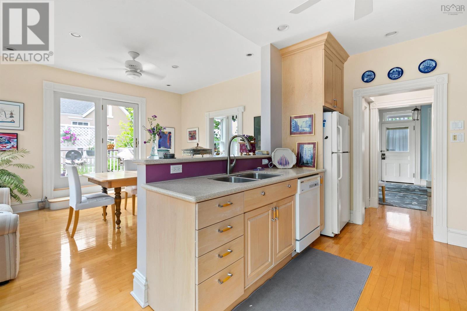 Located in the heart of Halifaxs coveted South End, this exceptional two-storey home with a separate lower-level garden suite blends modern sensibility with timeless charm. The noted architect/owners extensive renovations incorporate current design and upgrades seamlessly into the homes Victorian character. Set on a beautifully landscaped and private lot surrounded by mature trees, the property features an expansive south-facing sundeck and a fully fenced backyard. Inside, exquisite crown moulding, gleaming hardwood floors, high ceilings, and oversized updated windows create a bright and airy, elegant atmosphere. The welcoming foyer leads to a spacious living room with two stunning original fireplaces and large bay windows overlooking a quiet, tree-lined street. The charm continues into the adjoining large formal dining room with patio doors that open to the 240 sq ft South facing sundeck. The dining room connects effortlessly to the modern kitchen creating a sense of flow throughout. The patio doors off the kitchen lead to the rear deck and a backyard hideaway. Convenient powder room off the foyer, completes the main level. Upstairs, you'll find three generous bedrooms, one with fireplace mantle, a walk-in closet, a den with bonus upper balcony, along with a beautifully renovated 4-piece bath featuring a classic clawfoot tub and impressive marble-tiled flooring and walk-in shower. This property also boasts two walkout rear entrances, one from the lower level of the principal home and the second from the sizeable vacant private one-bedroom suite. Designed by the owner, this comfortable living space with 4-piece bath, plus den is ideal for extended family or supplemental income. Situated between Oakland Rd & South St, this property is just minutes from hospitals, Dalhousie, Saint Marys, downtown, & Point Pleasant Park. A rare opportunity to own a truly charming and versatile home in the city's most desirable neighbourhood. (231285544)