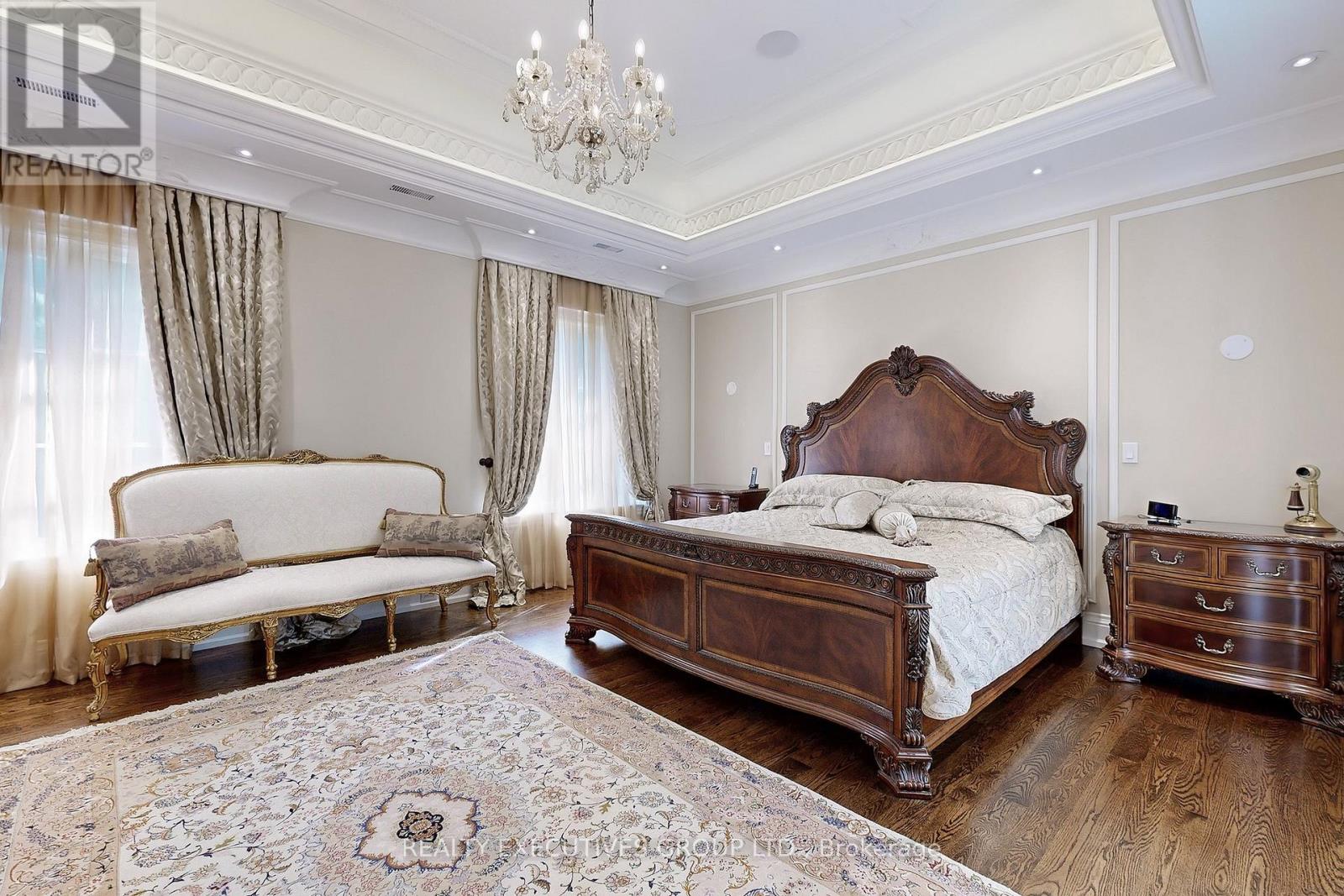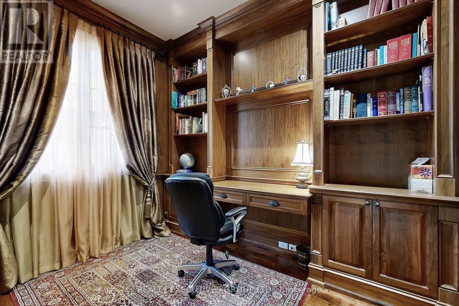 A Landmark in modern Luxury Living set on a prestigious ravine lot, this custom-built French-style estate is a true masterpiece, exemplifying an extraordinary level of craftsmanship, superior finishes, and uncompromising quality throughout. Boasting 5,292 sq. ft. of refined living space above grade, the home welcomes you with a dramatic grand foyer. The elegant living room features a gas fireplace with a custom mantel, while the sophisticated walnut-paneled library offers a serene workspace. The gourmet chefs kitchen is a culinary dream, complete with designer cabinetry, a large centre island, best-in-class appliances, and a breakfast area. The contemporary family room includes a fireplace and walk-out access to the private patio with a Napoleon BBQ, overlooking a lush ravine backdrop. The master bedroom is a luxurious retreat, featuring a gas fireplace, lavish walk-in closet, and an opulent ensuite with heated floors, a freestanding soaking tub, and spa-style shower. Additional bedrooms are generously sized, each with tastefully designed ensuites. The sprawling lower level (approx. 2,400 sq. ft.) is ideal for grand-scale entertaining and includes, separate entrance, gas fireplace, wet bar, one bedroom, combined kitchen/laundry room and a professional home theatre. Three (3) gas furnaces, two (2) central air conditioning units. One (1) tankless water heater. Built-in aquarium and equipment. Extensive hand made custom crown mouldings & columns. Skylight above staircase. Wrought iron railings. Finished attic with storage. Central vacuum system with floor sweep inlets (kitchen & master ensuite). Cold room with storage racks. Integrated audio system. Extensive pot lights. All existing electric light fixtures and window coverings. Nestled in a highly sought-after, quiet, upscale neighborhood, this residence offers a commanding street presence and a private ravine backyard. (41148877)