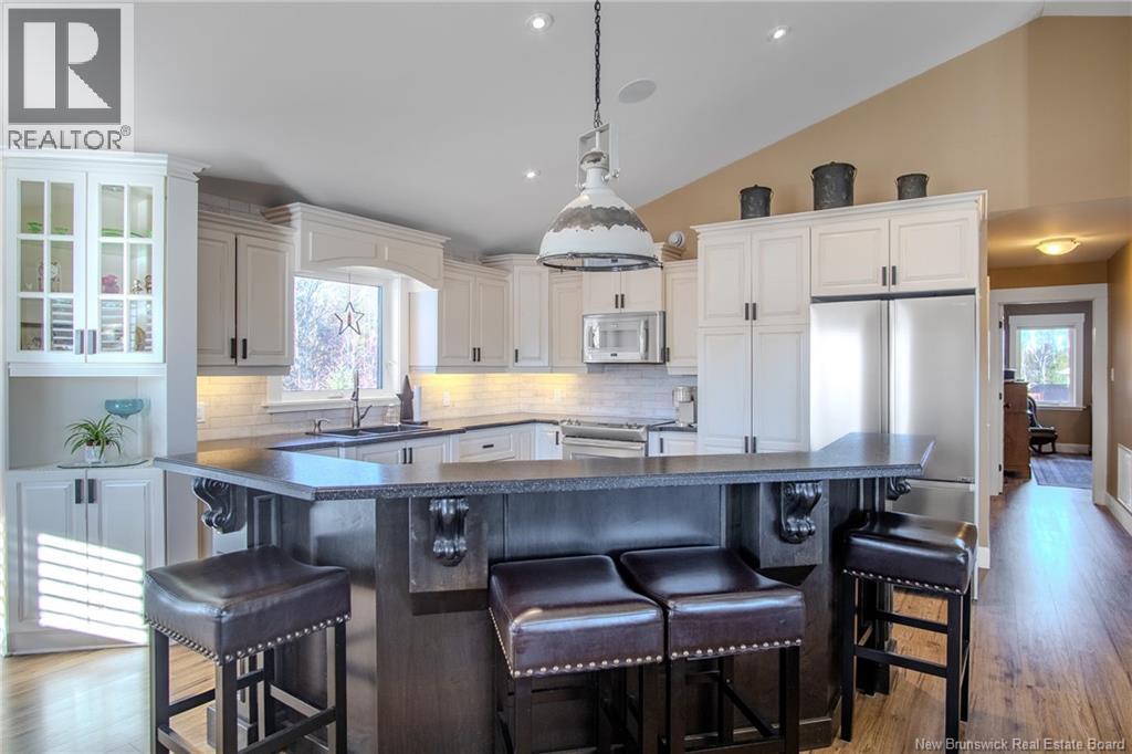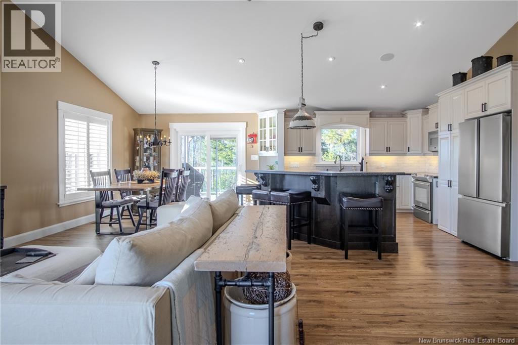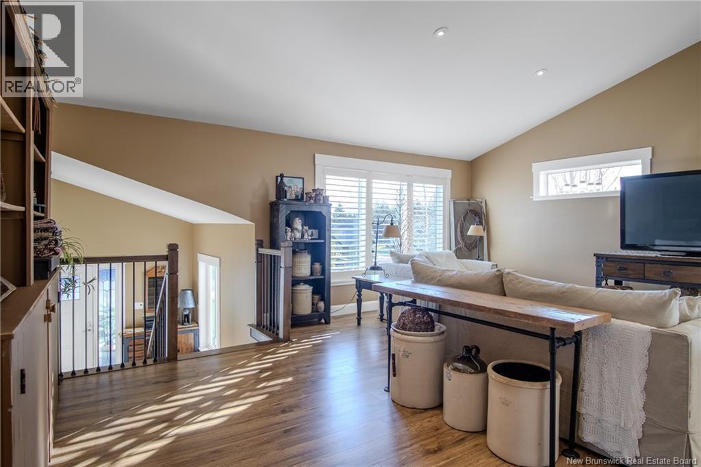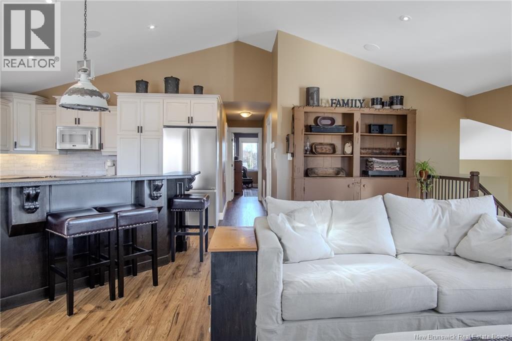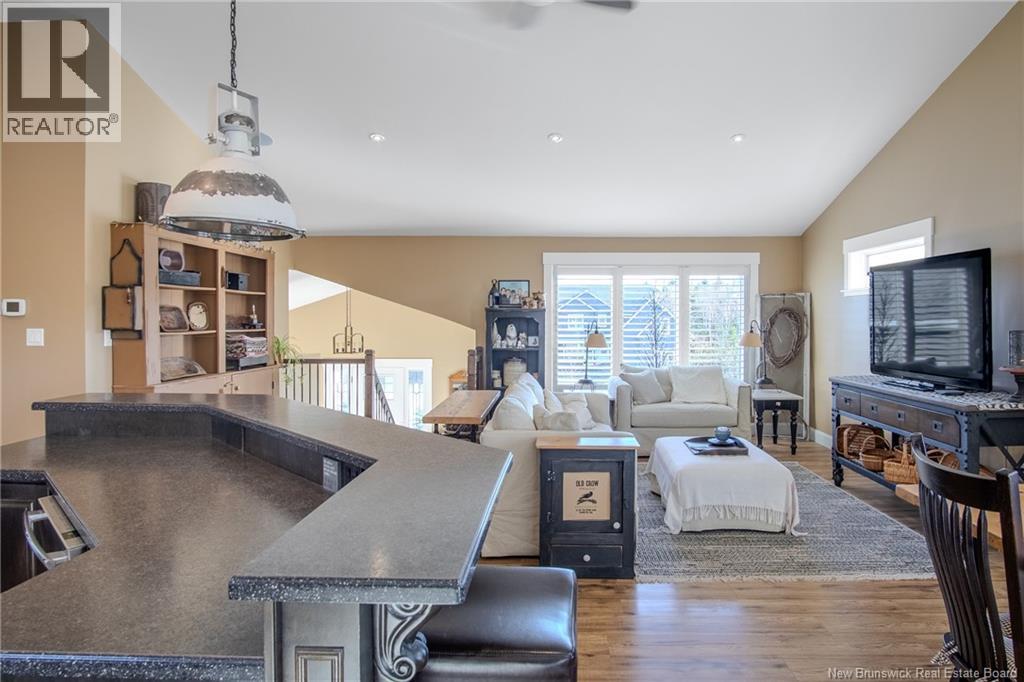 Stunning designed home with attached double garage and Loft. Located in prestigious neighbourhood in Grand Bay Westfield. Double paved driveway will lead you to a welcoming large front deck entrance with overhang to enjoy morning or evening coffee. Enter into spacious split entry foyer and you will be impressed by the vaulted ceilings and Great room with lots of windows and lighting. Much thought has been put into this custom design including Gourmet Kitchen with Island and hidden walk in pantry. Main floor with laundry room bathroom, 2nd bedroom and primary bedroom complete with gorgeous ensuite. Lower level for additional family room, 3rd bedroom, craft room or possible 4th bedroom. Many Added details to this home such as Ducted heat pump system, built in speakers, ensuite with heated floor,Custom California blinds, heated garage, plugin for generator, rollout drawers in kitchen cabinets, Hickory Laminate flooring throughout main level. Covered back deck overlooking fenced in back yard . (28911824)