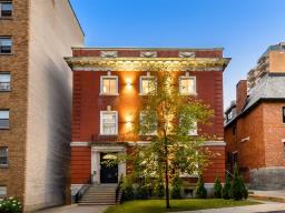 Exceptional address at the foot of Mount Royal, in the heart of the highly exclusive Golden Square Mile. Once home to Canada's greatest fortunes, this New York-style townhouse charms with its high ceilings, abundant natural light, and timeless elegance. The 12 units have been expertly and luxuriously renovated-ideal for a high-income rental property, an owner-occupant seeking substantial revenue, or a prestigious hotel project with an intimate courtyard ready to accommodate a pool. A unique opportunity in the heart of Montreal. (43977958)