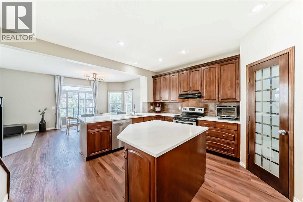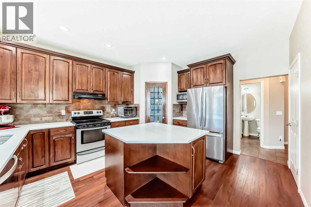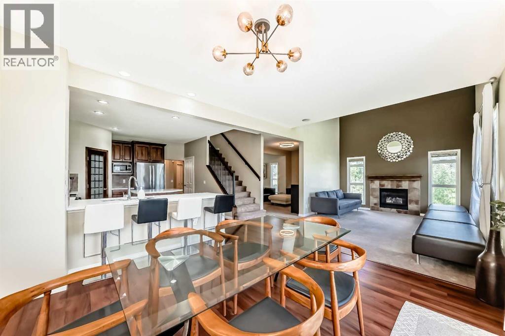 This charming two-story home with a fully developed walkout basement blends tranquility, beauty, and convenience in one exceptional package. Perfectly situated on a quiet corner lot with no rear neighbours, it offers uninterrupted pond views and a serene atmosphere you’ll love coming home to. This double garage has a heater that provides year-round comfort, and recent updates include new roof shingles (Nov 2023) for peace of mind.Inside, the main floor welcomes you with a formal living and dining room—perfect for gatherings—alongside a convenient laundry room and 2-piece bath. The spacious kitchen features quartz countertops (2021), generous storage, and a bright breakfast nook overlooking the pond. Luxury vinyl plank flooring (2021) runs throughout much of the main level, adding both style and durability. Step out onto the deck to savour your morning coffee or relax in the evening.The open-to-below family room, anchored by a cozy fireplace, exudes warmth and character. Upstairs, a versatile loft overlooks the family room, complementing three bedrooms, including a primary suite with a walk-in closet, spa-inspired 4-piece ensuite with a soaker tub, and newer carpet (2021). A 3-piece main bath completes this level.The fully finished walkout basement is designed for entertaining, offering a large rec room (pool table included), wet bar, 3-piece bath, and a fourth bedroom—plus direct access to the backyard.All of this within walking distance to Chestermere Lake, an elementary school, and a junior high. Just 20 minutes to downtown Calgary, you can enjoy city access without sacrificing peace and privacy.Don’t miss the 3-D Tour to experience the beauty and views for yourself! (31108917)