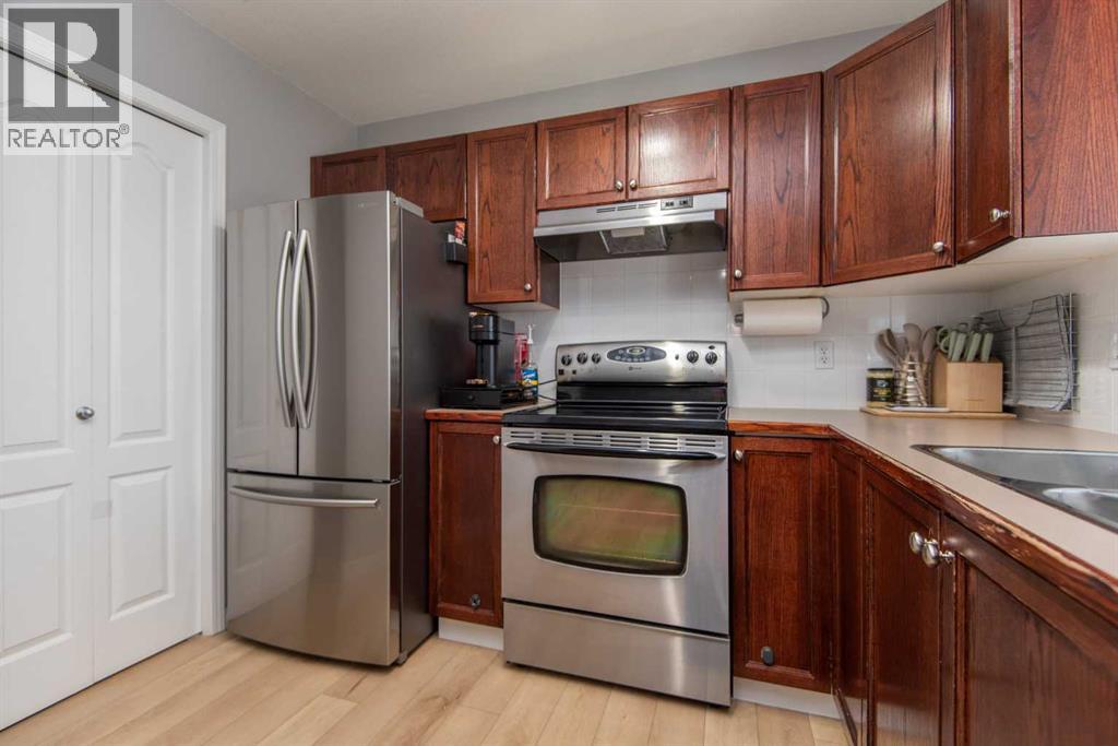 Welcome to this fabulous two-story townhome, perfectly situated in the desired quiet Deer Park location. As you step onto the cozy front porch, you’ll immediately feel at home. The upper floor boasts two spacious bedrooms, including a primary suite that comfortably accommodates a king-size bed and dresser, complemented by an oversized walk-in closet. The four-piece bathroom on this level enhances convenience and comfort. On the main level, enjoy a spacious living room featuring a gas fireplace. The bright kitchen is equipped with new appliances and offers a walk-in pantry for ample storage. A convenient two-piece bathroom completes this floor, along with brand new vinyl plank flooring that adds a modern touch. The basement awaits your finishing touches, providing the perfect opportunity to create additional living space. Outside, you'll find parking for two vehicles and a fully fenced yard with vinyl fencing. (31116264)