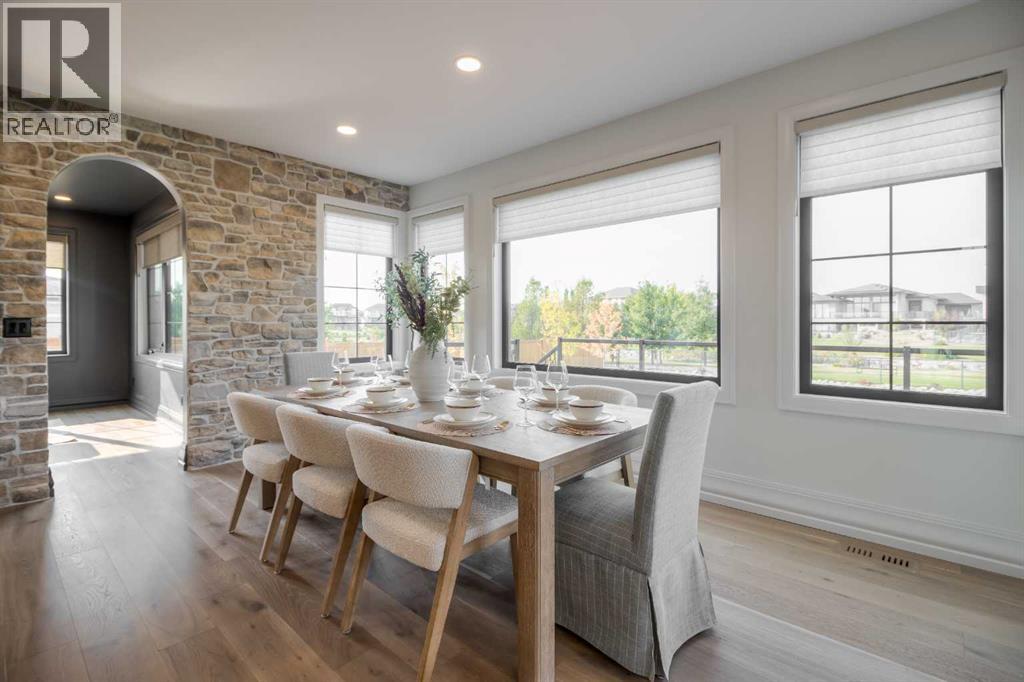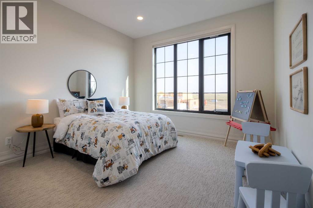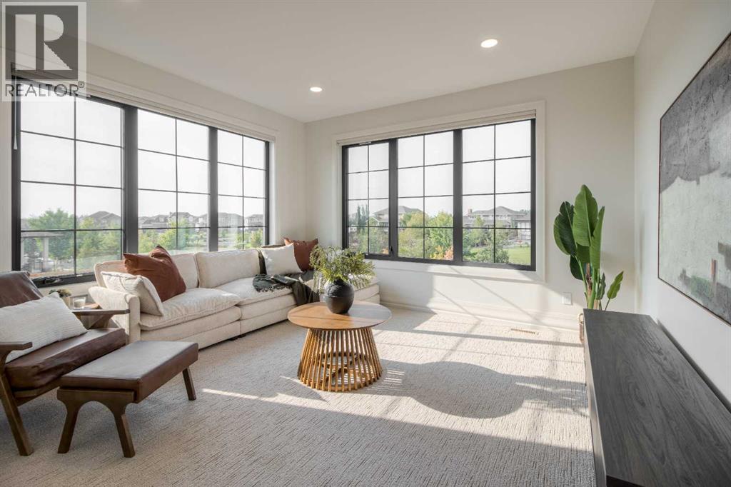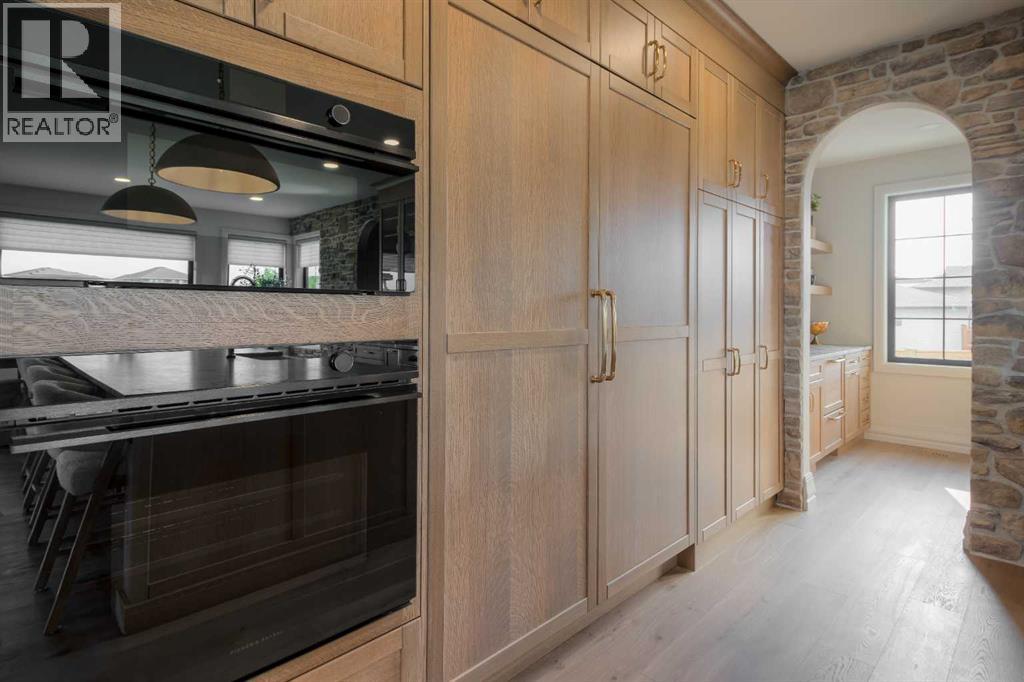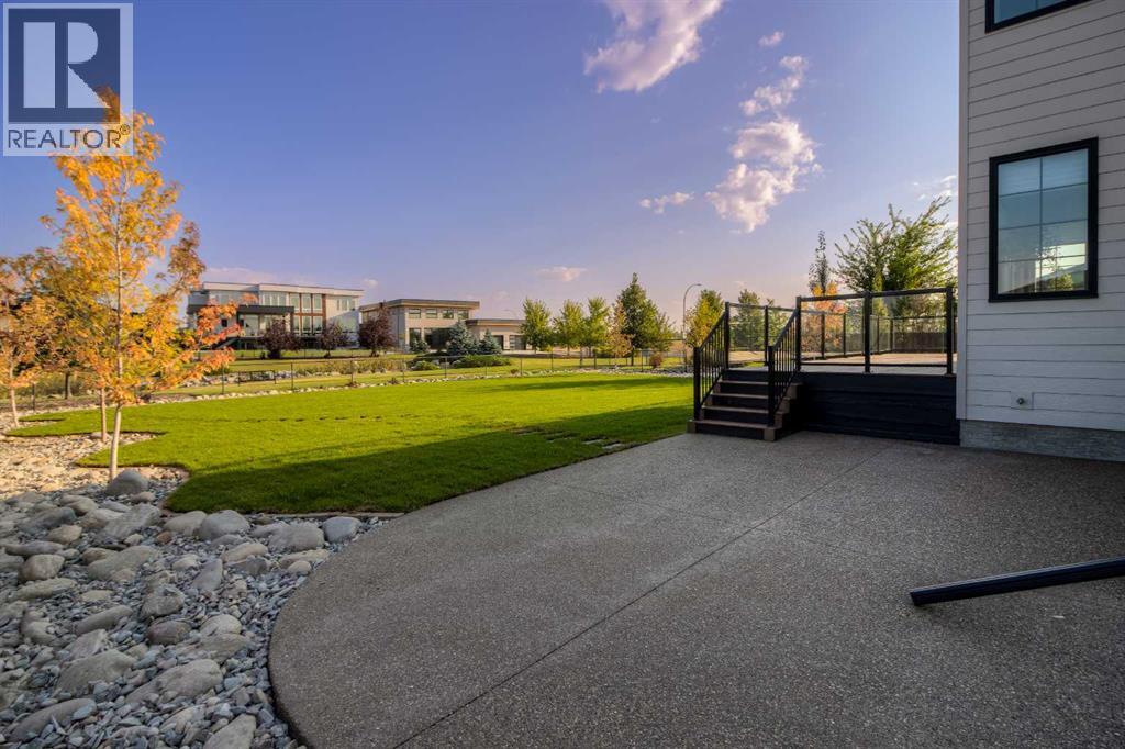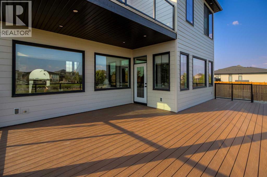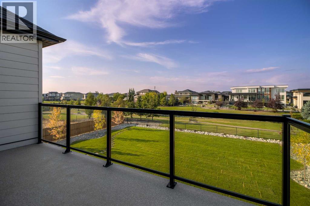 Welcome to the Meadow by Stranville Living Master Builder, located in the premier estate living community of Prairie Arbour Estates. This elegant two storey home boasts 4,417 square feet of developed area spread over three spacious levels in one of most thoughtful layouts you're likely to see. Where do we start? The French country exterior combines natural tones in acrylic stucco, fiber cement siding, and stone work with bold roof lines and dark contrasting windows. Large panes of high efficient glass envelope the home providing significant volumes of natural light and tranquil views of the huge yard and of Prairie Arbour's pond and walking paths. Fresh landscaping throughout the 1/3rd acre lot includes several trees, irrigated sod, exposed aggregate sidewalks, and a playful stone pathway to the park; all surrounded by a brand new privacy fence with two gates. Heading inside the home, the front entry foyer towers up 16' where a dramatic chandelier sets the tone for what lies ahead. Up a few stairs into the family room, you immediately get a feel for the expansive main floor with clear views to the kitchen, dining room, and out to the back yard and the 576 square foot composite deck. The kitchen is bathed in white oak cabinetry with gold accents, and includes a premium appliance package by Fisher & Paykel, consisting of a paneled double fridge-freezer combo, gas cooktop with flat top, and wall mounted microwave and oven. More storage and counter space can be found adjacent the kitchen in the butler's pantry, which is finished in the same beautiful Davinci Leathered Quartzite as the kitchen. The large dining area easily seats 8-10 guests and is surrounded by glass and Hunter Douglas window coverings when privacy is on the menu. An executive style corner office that completes the main floor is drenched in dark tones and is accented by built-in shelving and even more windows. The second floor is the heartbeat of this terrific family home. The massive primar y suite has an amazing private balcony overlooking the backyard and park, perfect for early mornings or late nights. Warm your feet on the heated floors of the primary ensuite bathroom, which is fitted with a lengthy double sink vanity with illuminated mirrors, a large custom tiled shower, and a sultry soaker tub. Two more large auxiliary bedrooms and a corner media room maximize the use of space on the second level. This caliber of home requires full development and Stranville Living really wanted to show what could be done with the 1,358 square feet available in the basement. Tune your game and tee up on a premium golf simulator located beside a large family room, full 4-piece bathroom, another auxiliary bedroom, and a wet bar. I could list all of the upgrades in this home, but I'd rather you see it than read it. To fully appreciate what this home offers, you need to spend some time in it. There's nothing like NEW! (31123237)