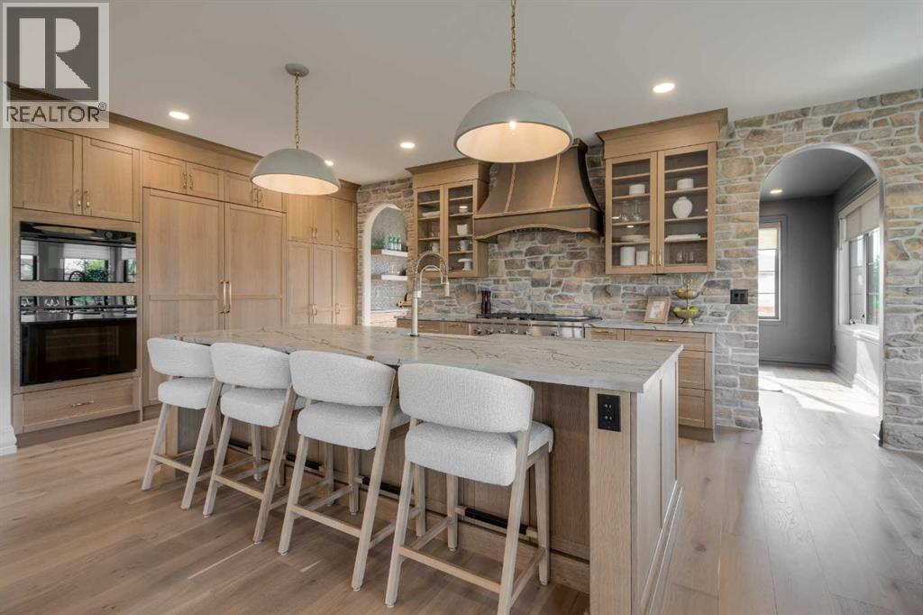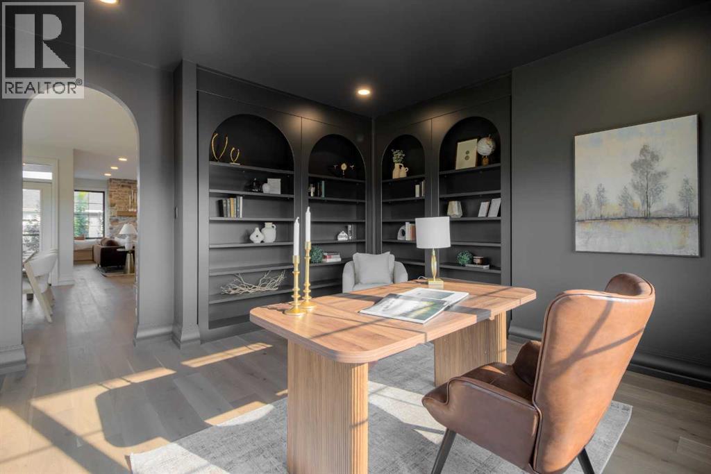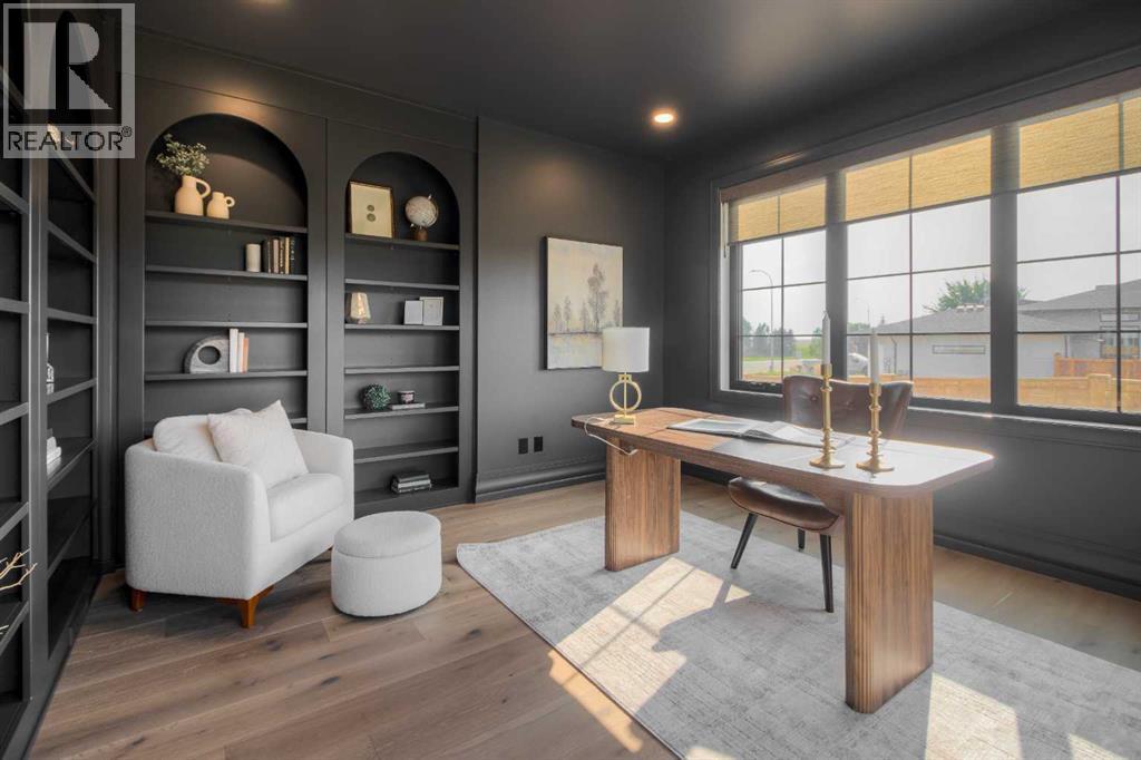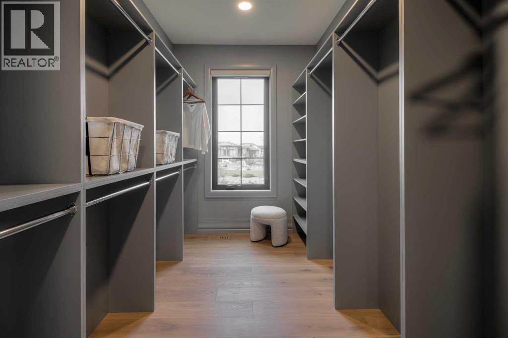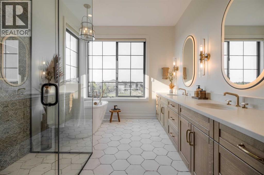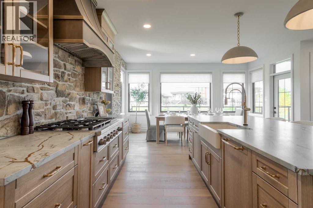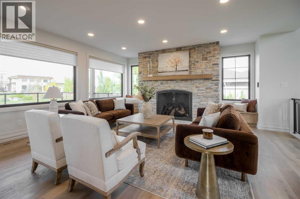 Welcome to the Meadow by Stranville Living Master Builder, located in the premier estate living community of Prairie Arbour Estates. This elegant two storey home boasts 4,417 square feet of developed area spread over three spacious levels in one of most thoughtful layouts you're likely to see. Where do we start? The French country exterior combines natural tones in acrylic stucco, fiber cement siding, and stone work with bold roof lines and dark contrasting windows. Large panes of high efficient glass envelope the home providing significant volumes of natural light and tranquil views of the huge yard and of Prairie Arbour's pond and walking paths. Fresh landscaping throughout the 1/3rd acre lot includes several trees, irrigated sod, exposed aggregate sidewalks, and a playful stone pathway to the park; all surrounded by a brand new privacy fence with two gates. Heading inside the home, the front entry foyer towers up 16' where a dramatic chandelier sets the tone for what lies ahead. Up a few stairs into the family room, you immediately get a feel for the expansive main floor with clear views to the kitchen, dining room, and out to the back yard and the 576 square foot composite deck. The kitchen is bathed in white oak cabinetry with gold accents, and includes a premium appliance package by Fisher & Paykel, consisting of a paneled double fridge-freezer combo, gas cooktop with flat top, and wall mounted microwave and oven. More storage and counter space can be found adjacent the kitchen in the butler's pantry, which is finished in the same beautiful Davinci Leathered Quartzite as the kitchen. The large dining area easily seats 8-10 guests and is surrounded by glass and Hunter Douglas window coverings when privacy is on the menu. An executive style corner office that completes the main floor is drenched in dark tones and is accented by built-in shelving and even more windows. The second floor is the heartbeat of this terrific family home. The massive primar y suite has an amazing private balcony overlooking the backyard and park, perfect for early mornings or late nights. Warm your feet on the heated floors of the primary ensuite bathroom, which is fitted with a lengthy double sink vanity with illuminated mirrors, a large custom tiled shower, and a sultry soaker tub. Two more large auxiliary bedrooms and a corner media room maximize the use of space on the second level. This caliber of home requires full development and Stranville Living really wanted to show what could be done with the 1,358 square feet available in the basement. Tune your game and tee up on a premium golf simulator located beside a large family room, full 4-piece bathroom, another auxiliary bedroom, and a wet bar. I could list all of the upgrades in this home, but I'd rather you see it than read it. To fully appreciate what this home offers, you need to spend some time in it. There's nothing like NEW! (31123237)