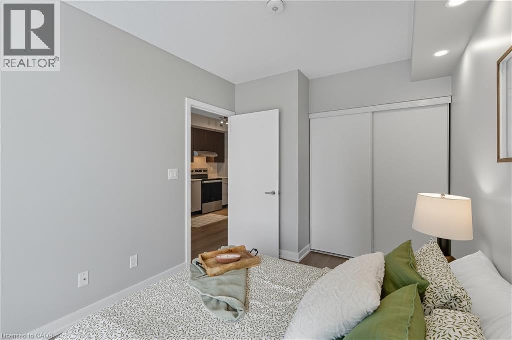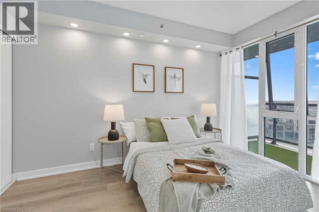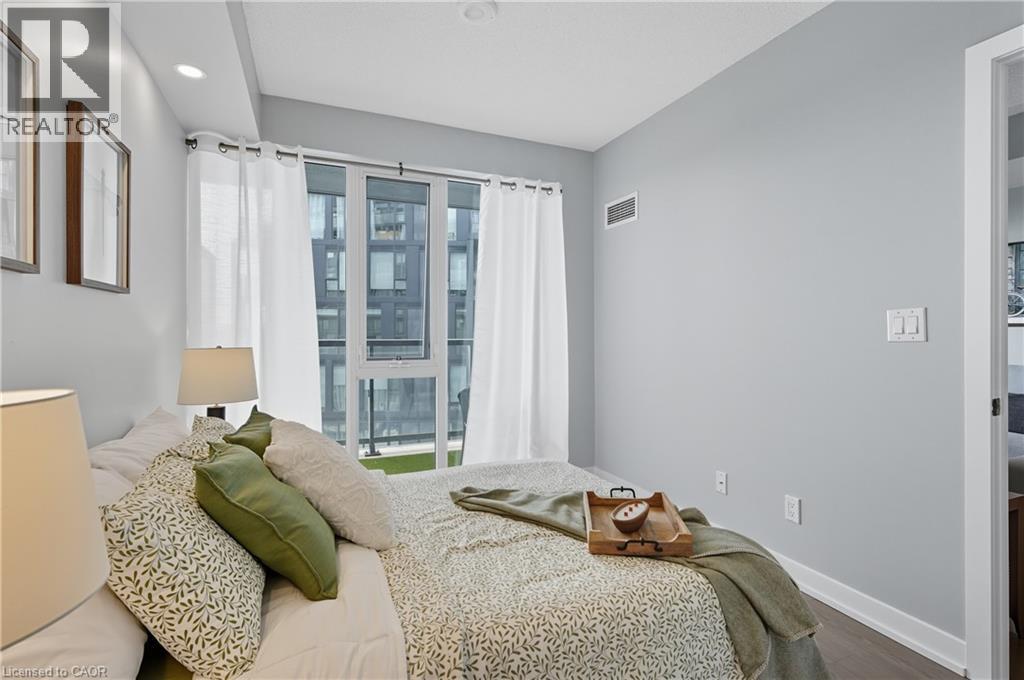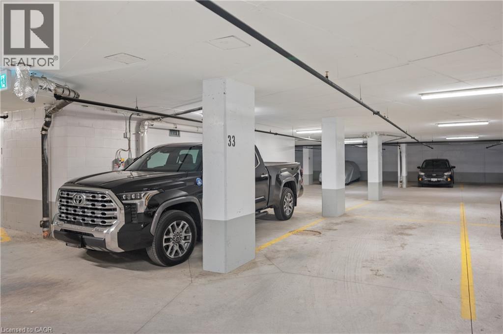 Stunning condo in Burlington's Alton Village! RARE offering of 2 UNDERGROUND PARKING SPOTS! 2 LOCKERS too!! freshly painted thru-out, beautiful open upgraded kitchen to living space, floor-to-ceiling windows providing ample sunlight, brand new modern luxury vinyl flooring, bedroom is extra bright with floor to ceiling windows, upgraded pot lighting, and large edge to edge west-facing balcony. The building offers top-notch amenities: 24/7 concierge, outdoor pool, BBQ terrace, fitness studio, sauna, steam room, pet spa, and a party room. Located steps from shopping, dining, and leisure facilities, with easy access to the 407, Appleby GO and Bronte Creek Park! this property offers unparalleled convenience and lifestyle. Don't miss this exceptional living opportunity! (69660107)